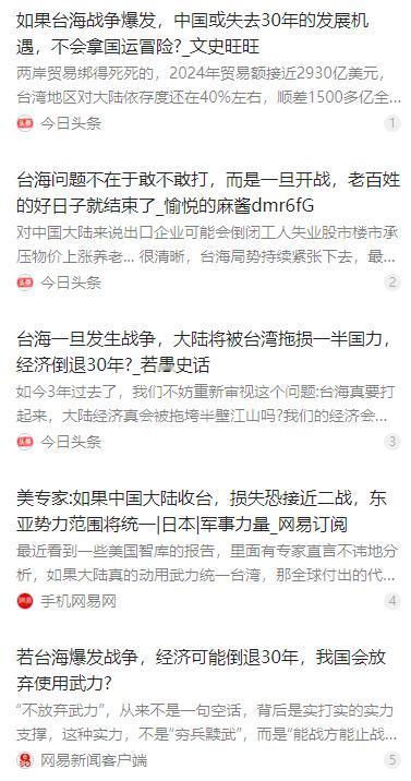 台海要是真开打,不管战场上谁输谁赢,第一个被拖下水的,就是我们自己,别老沉浸在“美国敢插手就让他有来无回”这种豪言壮语里,光听着爽,可一旦真开火,经济、民生、社会秩序,哪一样不先塌?嘴上硬气,日子照样得过,谁能替你扛炸弹? 麻烦看官老爷们右上角点击一下“关注”,既方便您进行讨论和分享,又能给您带来不一样的参与感,感谢您的支持! 如今网上不少人聊起台海,总爱说 “美国敢插手就让他有来无回”,听着解气,却忽略了最现实的代价。真到开火那一天,不管战场输赢,最先被拖下水的,就是我们每一个普通人。 战争从不是屏幕里的画面,而是会砸进日常生活的灾难。供应链断裂、工厂停工、就业岗位缩减、物价快速上涨,这些都会先于战场胜负,落在每个人头上。 我们不否认国防实力,也坚定维护国家主权,但爱国不该是不计后果的冲动。和平发展的日子来之不易,真打起来,没人能替普通人扛下生活的冲击。 俄乌冲突已经给出最直观的警示。战争爆发后,俄罗斯遭遇多轮制裁,货币贬值、民生商品价格上涨、民众实际收入下降,福利与就业都受到明显影响。 这些冲击不是暂时的,而是长期渗透到日常。买菜、出行、就业、还贷,每一件小事都会被战争牵动,普通人的生活压力会成倍增加。 台海一旦生变,冲击只会更直接。我国外贸依存度高,沿海制造业密集,全球供应链与我们深度绑定。战事一起,航运受阻、订单流失、企业收缩,失业潮很快会传导到普通人身上。 股市、楼市会出现波动,进口商品与原材料价格上涨,日常消费成本抬升,原本稳定的生活节奏会被彻底打乱,社会秩序也会面临考验。 外部势力一直想借台海牵制中国发展,他们巴不得我们陷入冲突,打断现代化进程。战火一旦点燃,制裁、封锁、舆论围堵会接踵而至,想快速收场几乎不可能。 真正的大国博弈,拼的是持久国力,不是一时意气。被激进言论裹挟,轻易走向战争,恰恰中了对手的圈套,牺牲的是全体民众的安稳生活。 台湾是中国不可分割的一部分,实现统一是民族夙愿,也是必然趋势。但我们的底线是,不承诺放弃使用武力,这针对的是 “台独” 分裂势力与外部干涉,绝非台湾同胞。 和平统一才是最符合两岸人民根本利益的选择,也是国家长期坚持的方针。以战止战是底线,不是首选,更不是可以随意挂在嘴边的口号。 真正的强大,是珍惜和平环境,埋头发展经济、完善民生、提升科技与综合国力。用实力遏制 “台独”,用发展筑牢安全,用耐心与智慧争取最好结果。 爱国要理性,更要务实。不被网络爽文式言论迷惑,不把战争当口号,看清背后的民生代价,守护好当下的安稳,才是对自己、对家庭、对国家负责。 我们有决心捍卫主权,更有智慧守护和平。不盲目好战,不轻视代价,坚持以和平方式推进统一,才能让发展成果真正惠及每一个人。