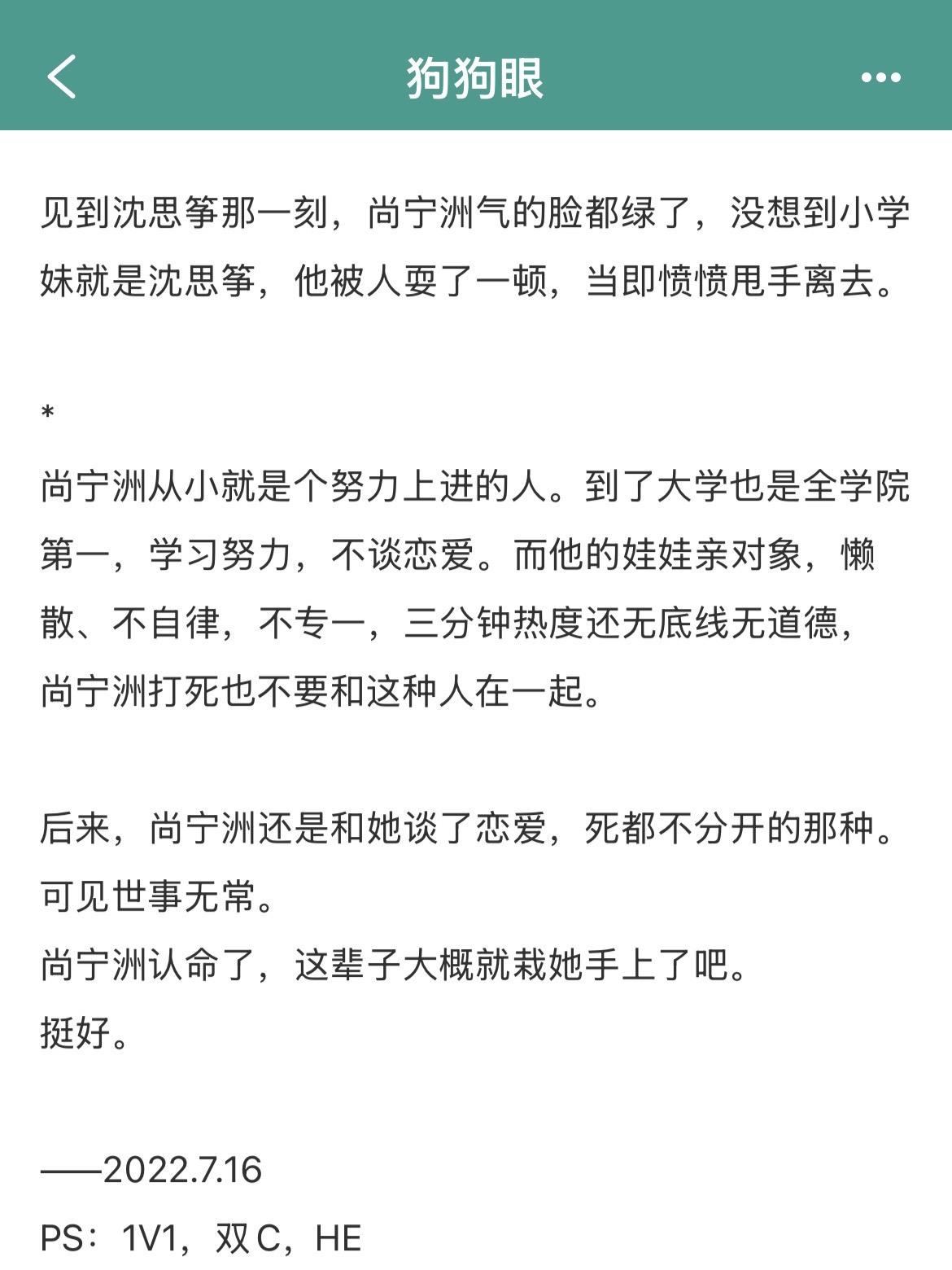 慵懒佛系拽姐vs真诚炽热小狼狗。慵懒佛系拽姐vs真诚炽热小狼狗 ※1V1+双C+HE。 ※努力上进真诚炽热的小狼狗×天赋极高却懒散佛系的拽姐。 书名:《狗狗眼》 作者:唐灯里 标签:现言小说、甜文、轻松文、完结文