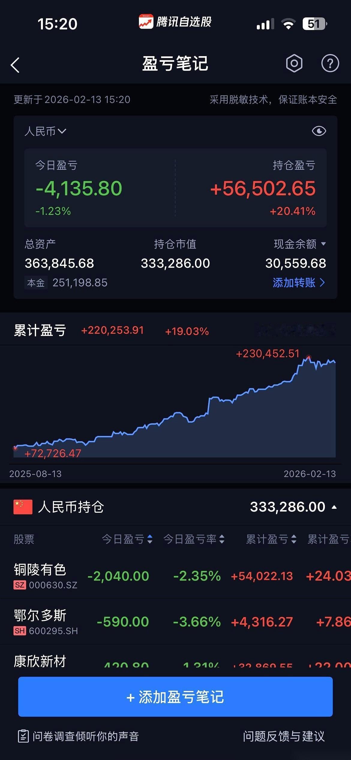 本来指望年前这最后一把,给年夜饭桌上加个横菜。 得嘞。 菜没了,锅都让人端走了。 -4135。 就今天一天,二月份赚的全吐回去了,还倒贴。看着账户里绿油油的一片,我甚至觉得有点环保。 昨天晚上不是还说什么万亿大利好吗?我激动得以为要发钱了。 结果呢?今天这走势,感觉就是往水里扔了个响炮,噗呲一声,然后……然后就没然后了。 3800多家一起跳水,这场面,壮观。 说真的,有时候真想不明白。 也可能想明白了,大家伙都忙着去超市抢打折年货了,谁还有心思在这跟它耗着啊。 毕竟年货是实打实的,能吃能用,这屏幕上的数字,上一秒还是你的,下一秒就姓王了。 算了。 不看了,心烦。app卸了清净。 钱没赚到,年总得过好。 提前祝各位,新年快乐吧。希望大家年夜饭的桌子,都比我的账户红火。