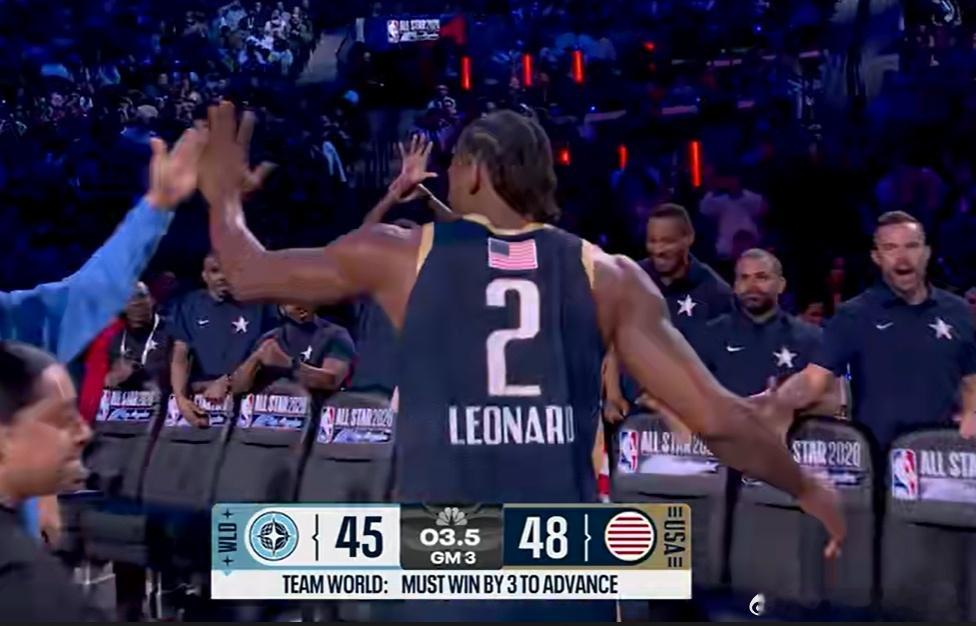 伦纳德绝杀世界队伦纳德全明星单节31分篮球之神!12分钟31分,13投11中,