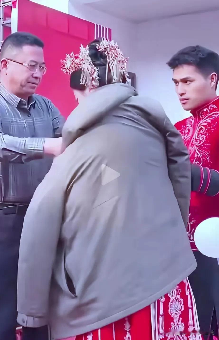 婚礼上,男子面对女儿一脸无奈,新郎不敢直视岳父。这又是一场无奈的婚姻,婚礼上男子看到女儿穿的那么单薄,把自己的棉袄脱下来给女儿披上,新郎此时此刻用眼睛瞟了一眼老丈人。从男子的脸上可以看出不情愿,不满意,但又无可奈何。新娘妈妈也是脸上没有表情,甚至很不高兴。 再看看新郎和他妈妈面相,可以看出两家家境还是有很大差距的。可能是男子对女儿选的对象不满意,但是女儿认定了,他又无可奈何,只好接受,祝愿女儿能过的很好。 就在男子脱下衣服给女儿披上的那一瞬间,新郎用眼睛瞟了她一眼,甚至都不敢直视老丈人。很多网友说。从女婿的眼神和面相,可以看出新浪不是那么善良的人,格局大的人。或许新娘日后会后悔选错了人,但是此时此刻,他的心里或许是幸福的。 男子最后把脸扭向一边,不知道是心里不高兴还是太勉强自己了?