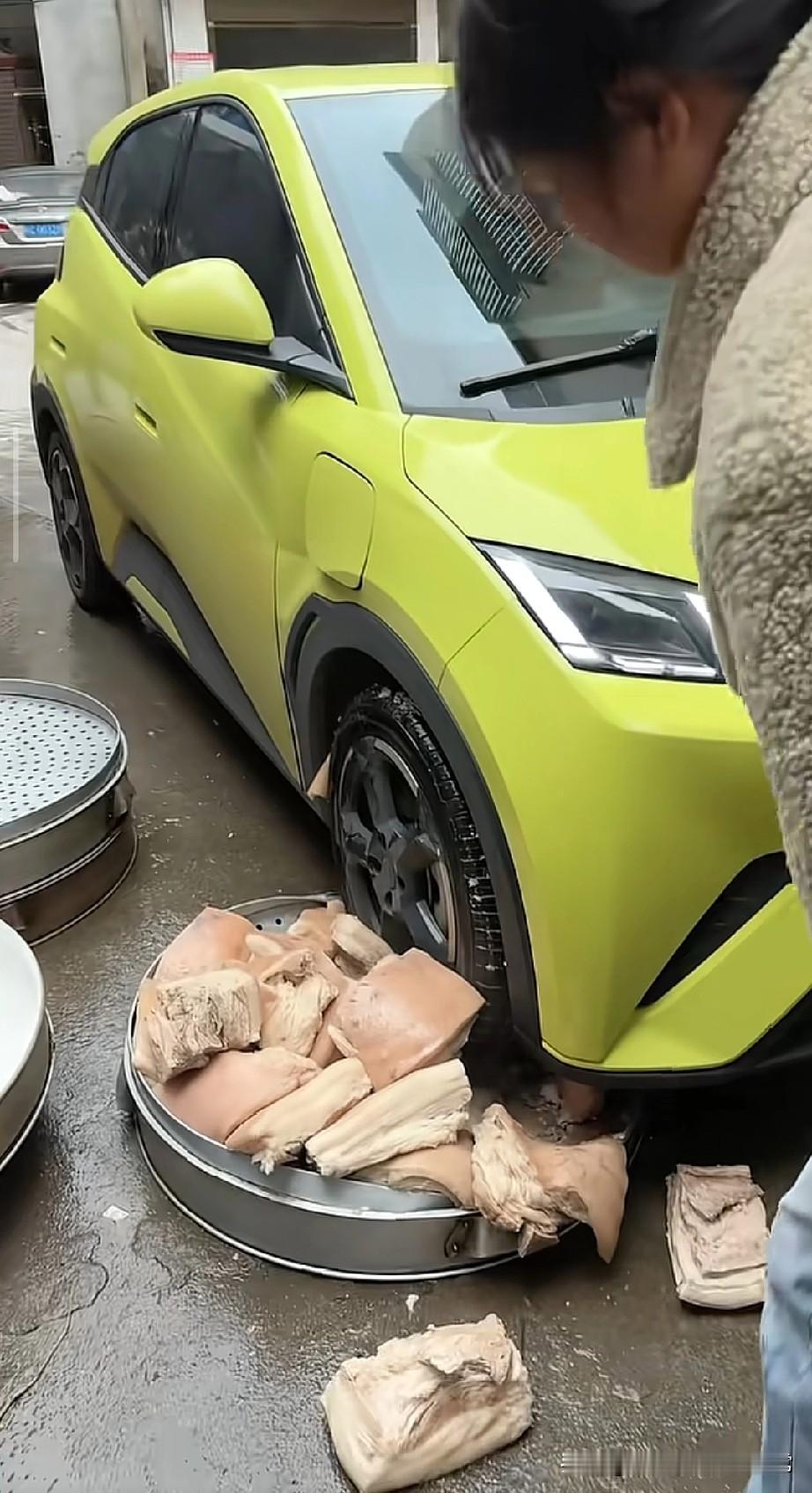 估计十年也不敢回家了 昨天倒车没注意,一脚油门下去,直接把刚煮好的年肉给“碾压”了。 看着那盆准备做扣肉的五花肉,被车轮子碾得稀碎,油汁混着血水在地上流成河,我妈在旁边气得直跺脚,说这是“汽车版的庖丁解牛”。 本来还想拍个新车过年的朋友圈,这下好了,直接成了年度社死现场。亲戚们都在笑,说我这是“车吃肉,人吃土”。 连夜收拾行李下广东,不是为了躲债,是真的没脸在家待了。这年,算是过不下去了。