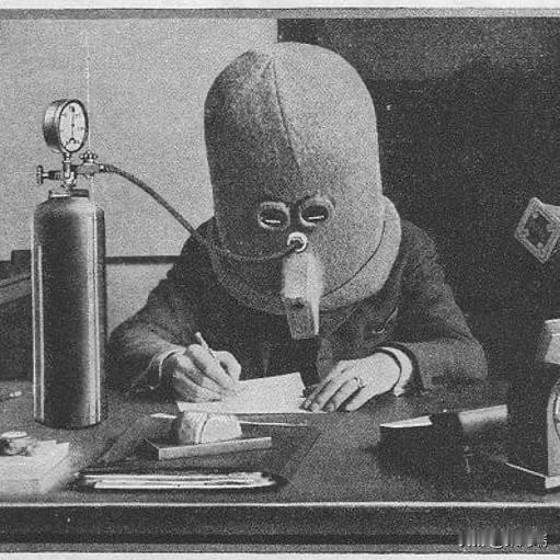 这张图片展示的是 “隔离头盔” (The Isolator)。这确实是 1925 年为了帮助人们集中注意力、减少分心而发明的装置。 隔离头盔由被誉为“科幻小说之父”的卢森堡裔美国发明家、编辑及作家 雨果·根斯巴克 (Hugo Gernsback) 发明。 设计初衷:根斯巴克发现自己在编辑和写作时很难长时间保持专注,容易受到噪音干扰。因此,他设计了这款头盔,旨在将使用者与外界的视觉和听觉刺激完全隔绝。 结构与功能: 材质:头盔由厚木材制成,内部衬有软木,外部包有毛毡。 隔音:据称可阻隔约 95% 的外部噪音。 视觉:眼部仅留有极窄的水平缝隙,使视野受限,只能看到正前方的纸张。 呼吸系统:由于头盔完全密闭,为了防止使用者窒息或感到困倦,它连接了一个外部氧气罐,通过管道向头盔内输送新鲜氧气。 结局与评价: 并不实用:头盔非常笨重,且佩戴 15 分钟后使用者往往会感到昏昏欲睡。 产量稀少:这款发明在 1925 年 7 月的《科学与发明》(Science and Invention) 杂志上首次亮相,但从未商业化,最终仅生产了约 11 个原型。 虽然它在现代人看来像科幻电影中的怪诞道具,但它被认为是现代降噪耳机和专注力应用(Focus apps)的前身,反映了人们早在百年前就开始尝试通过技术手段来解决“注意力分散”的问题。