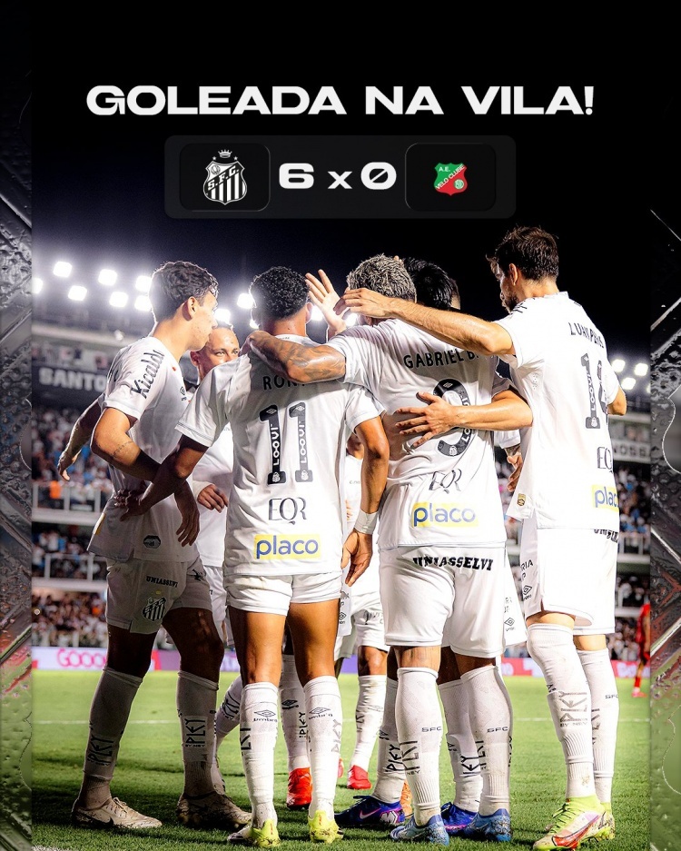 圣保罗联赛第8轮比赛,桑托斯主场6-0大胜维罗体育。