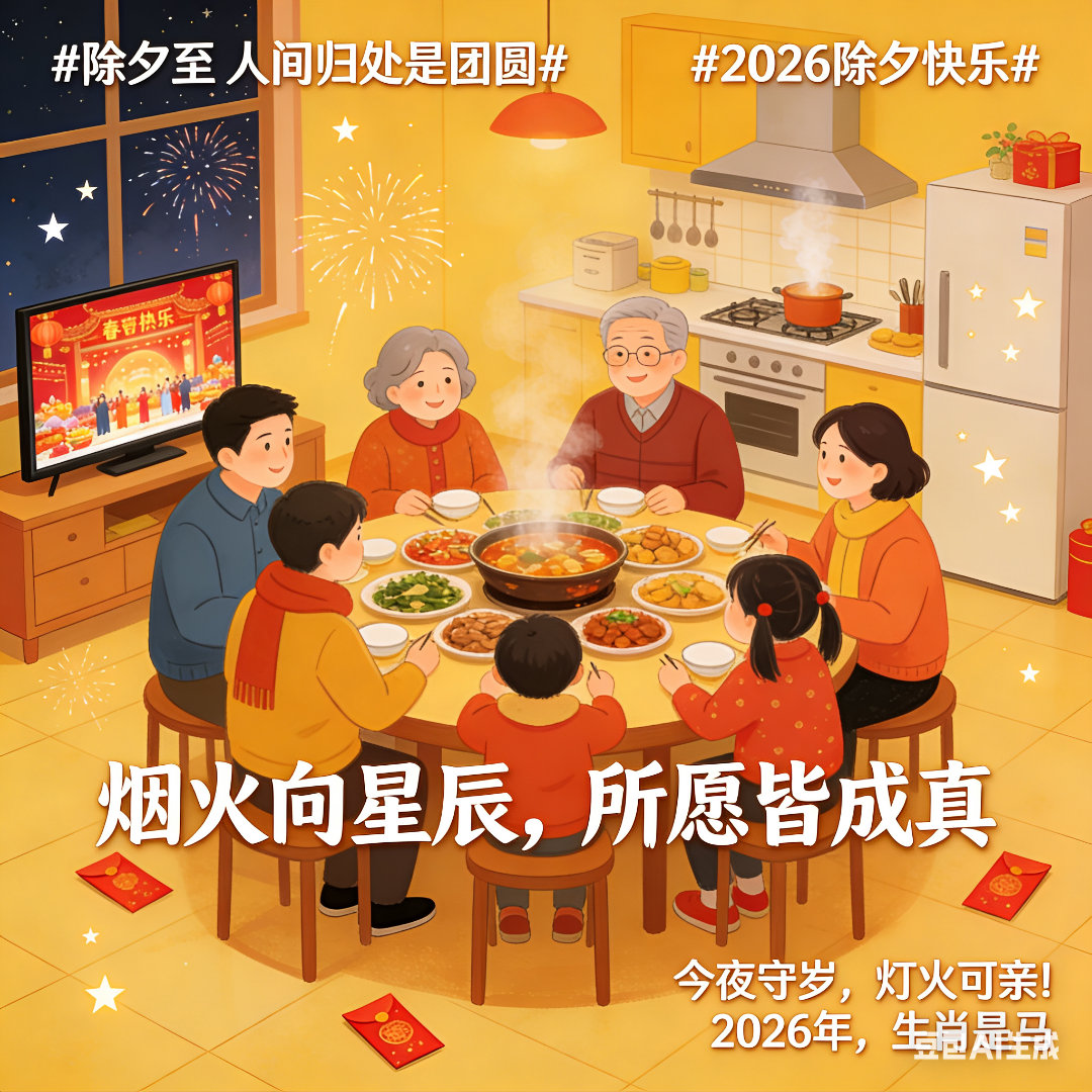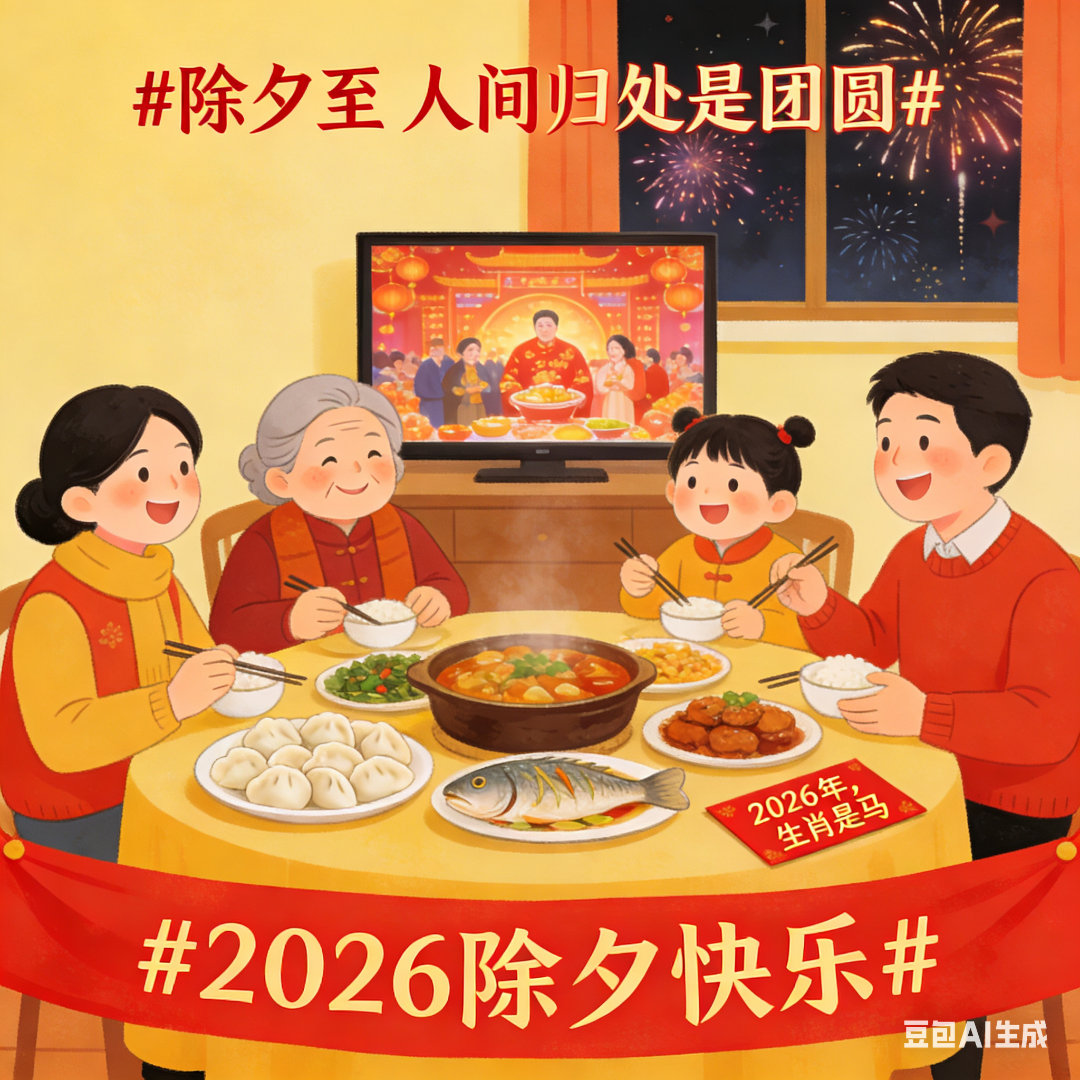 秦岭笑谈除夕至 人间归处是团圆2026除夕快乐这一年翻山越海,只为围桌而坐的那一刻✨所有奔赴,皆为团圆相联;所有等待,都有温暖回响。年夜饭的香气漫出厨房,春晚的旋律正在预热,满载心意的红包已在路上——烟火向星辰,所愿皆成真。无论此刻你身在何处,只要心在一起,就是最好的团圆。今夜守岁,灯火可亲!你今年在哪儿奔赴这份圆满?来评论区报个坐标,晒晒你的年夜饭❤️豆包春节假期