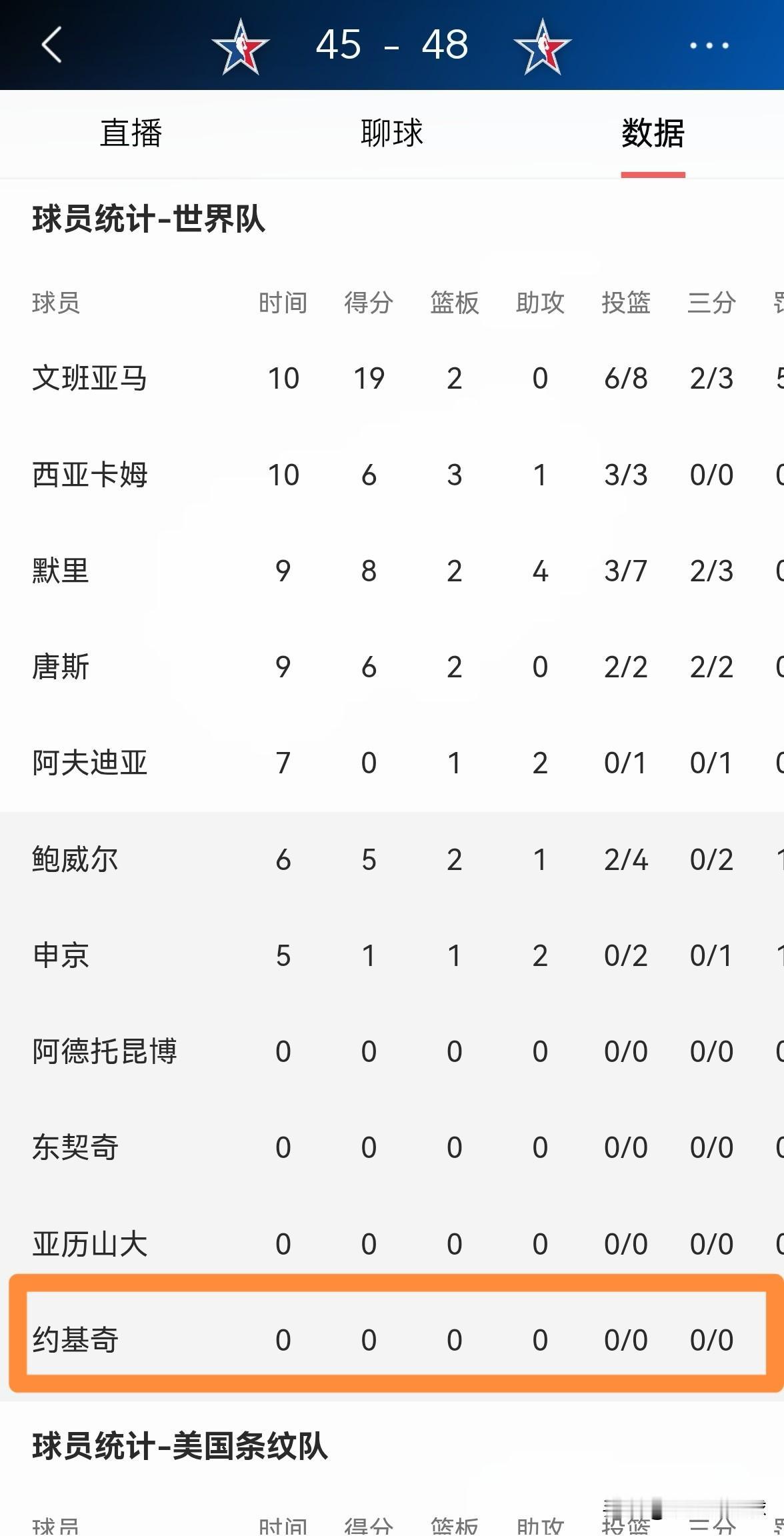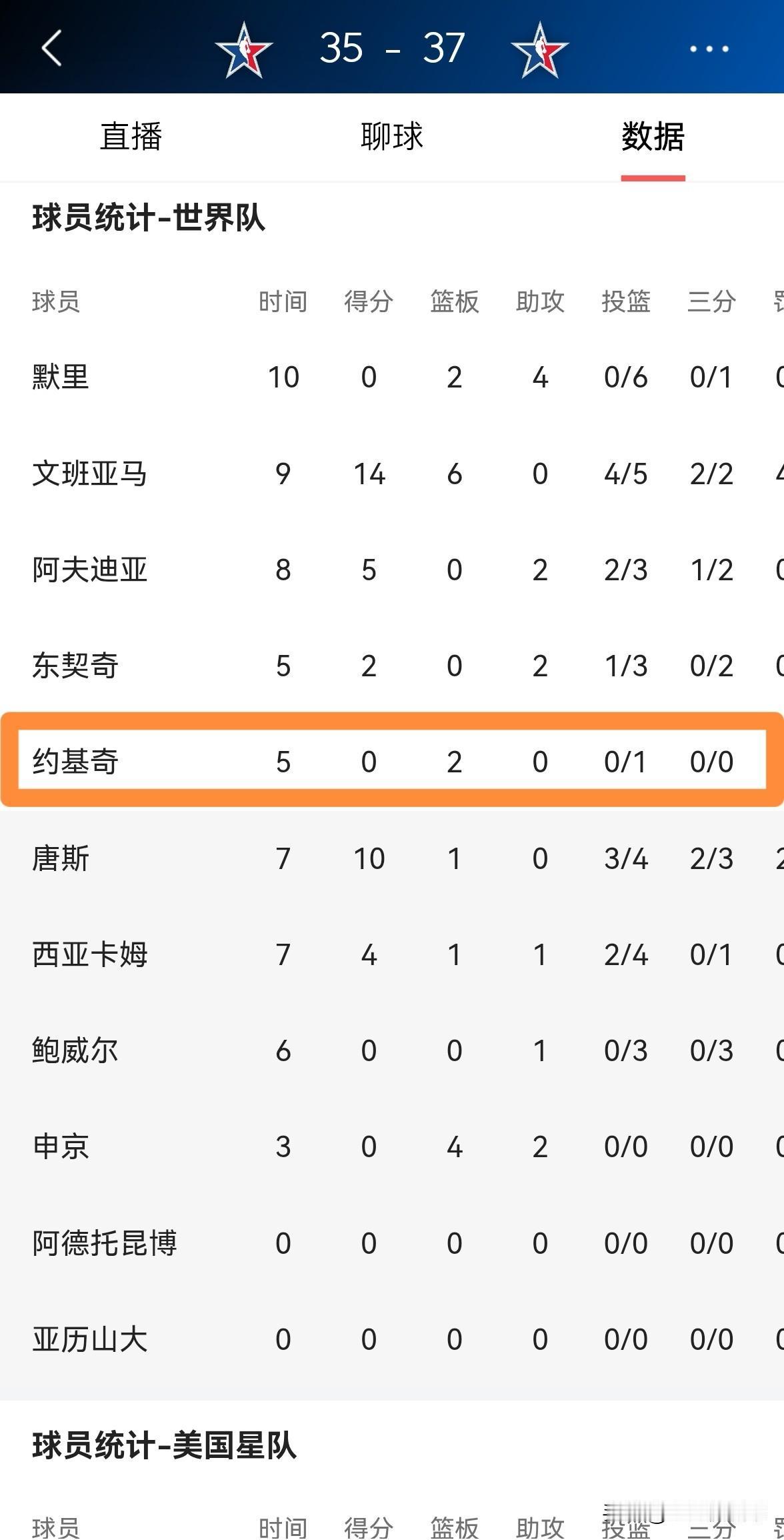 掘金超级巨星约基奇真是出工不出力!在今天结束的全明星正赛中,约基奇上演了一出出工不出力的好戏,约基奇是本届全明星三支球队里唯一没有得分的球员,属于典型的划水。 老实说,像约基奇这种在全明星赛中态度散漫的球员,真的配得上入选全明星吗?