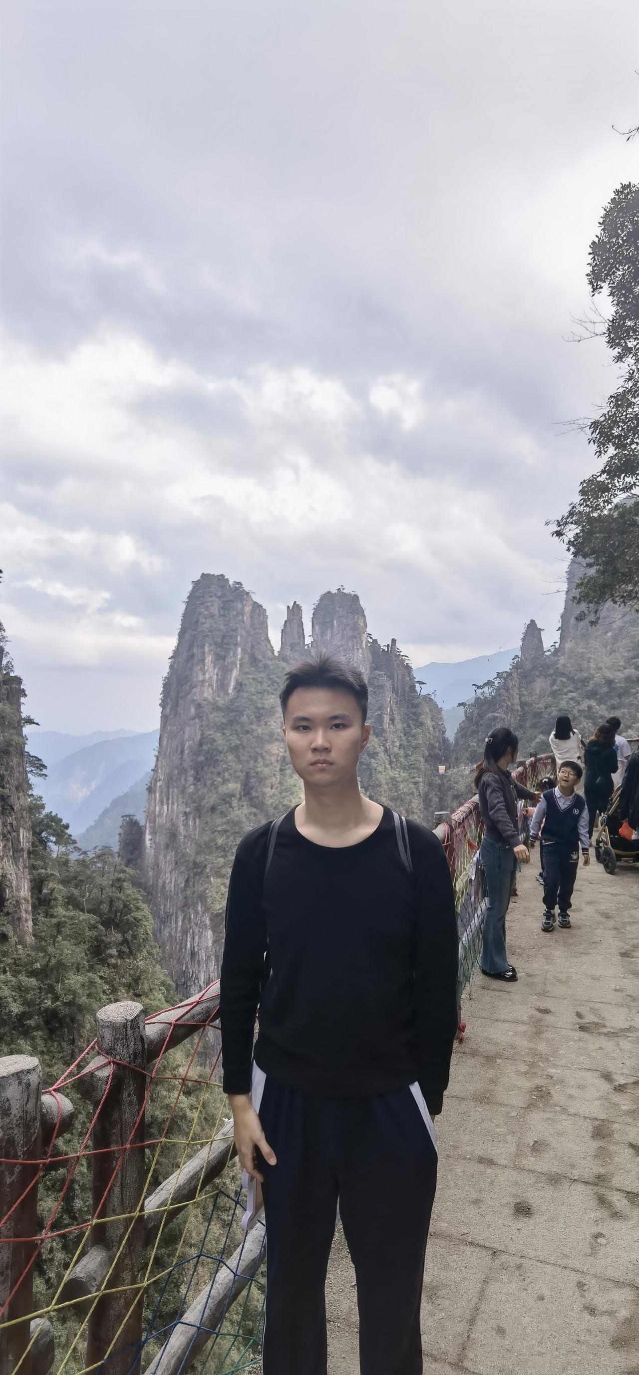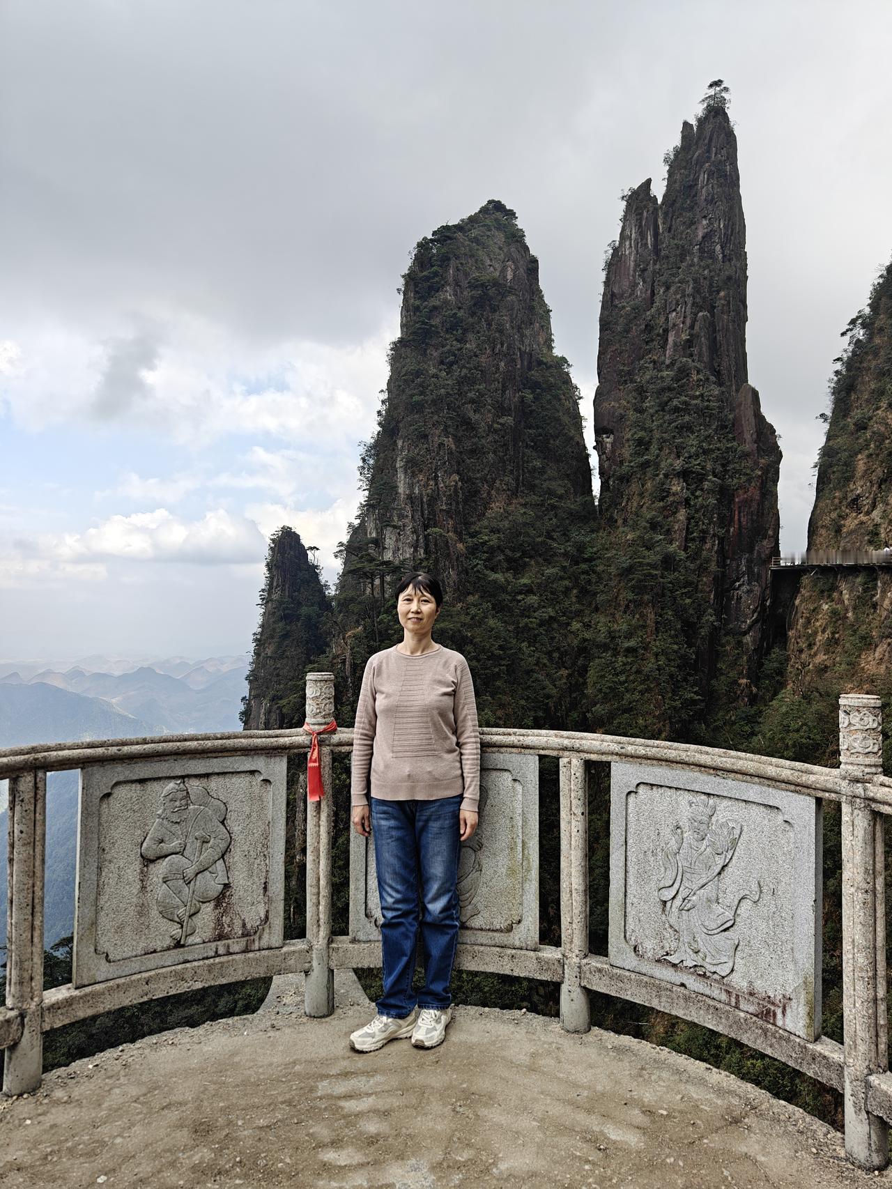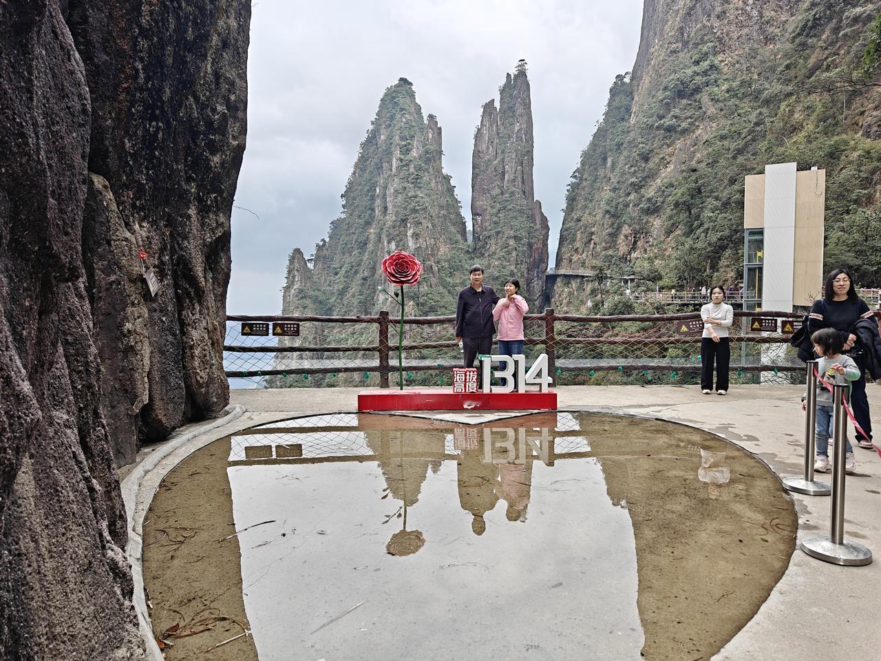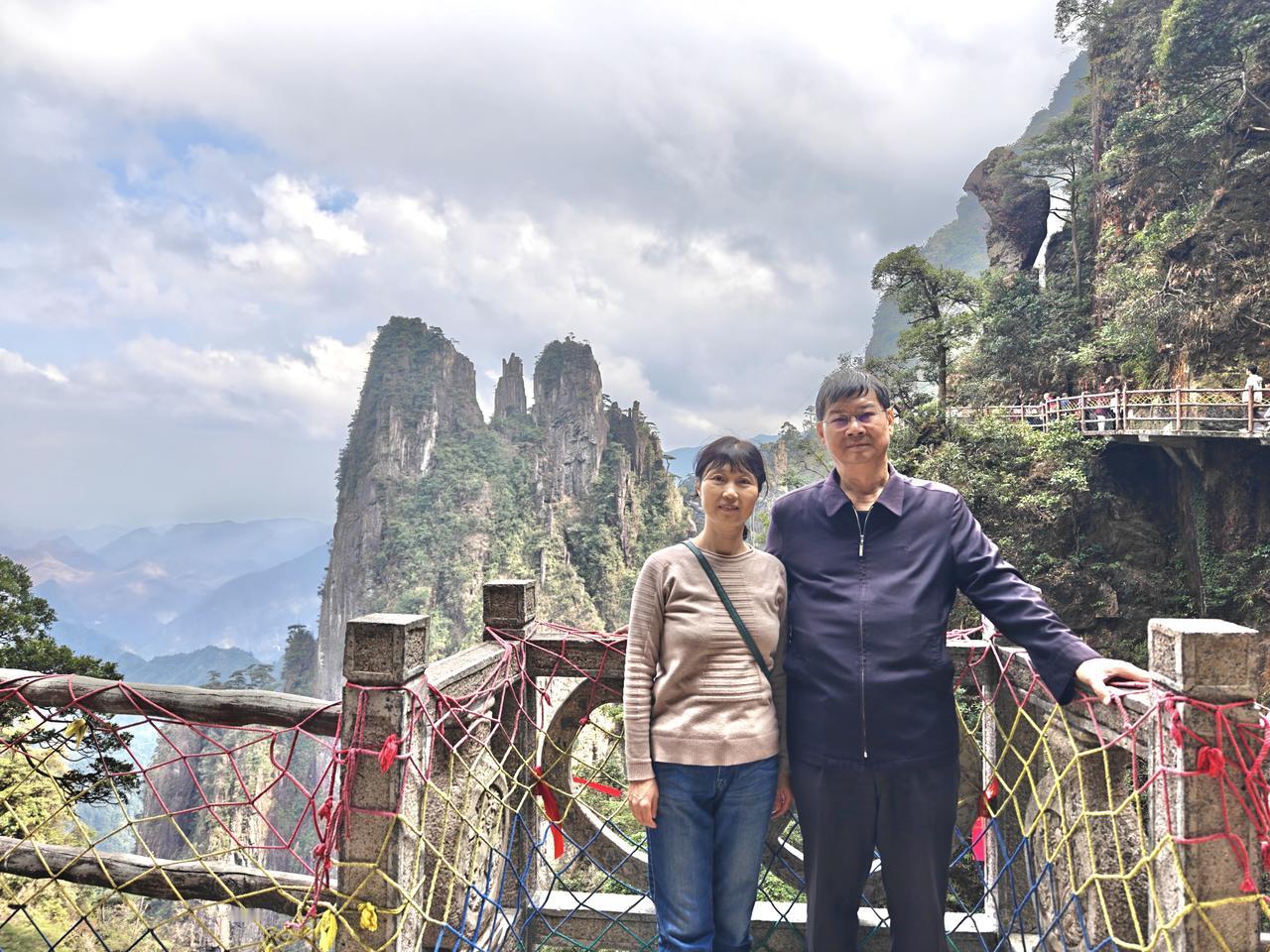 郴州莽山一日游(2.14) 我自粤北携南风, 一吹湘南热烘烘。 郴州初春顿如夏, 艳阳高照驱离冬。 买了冬帽穿羽绒, 莽山笑我太矫情。 东门缆车乘索道, 心梦云海看雾凇。 无障漫步如履平, 额头汗涔热升腾。 上下温差未几度, 往来着装相径庭。 峰峦叠嶂分三层, 峡谷峭峻险重重。 环环蜿蜒无雪景, 只怪看客多白丁。 垂直电梯疑是坑, 价格偏贵闻骂声。 不吝只为图省力, 花钱可买捷足登。 一三一四此山中, 海拔意韵味无穷。 但愿人间多美满, 有缘白头共一生 斧削刀斫见神工, 满目青山叠纵横。 望粤台前思绪涌, 小有遗憾梦是空, 学会释怀荡心胸, 归来已见夕阳红。 风云变幻看时令, 不枉今赏五指峰。