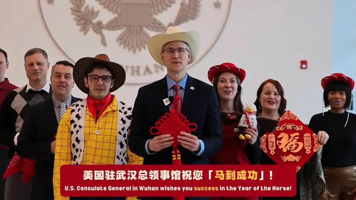 美国驻华使领馆刚刚发布视频,外交官們倾情以牛仔形象策马出镜,驻广州、沈阳、武汉、上海总领馆职员们以各地方言齐贺大家马年快乐,喜庆气氛拉满。 这波操作不小气。