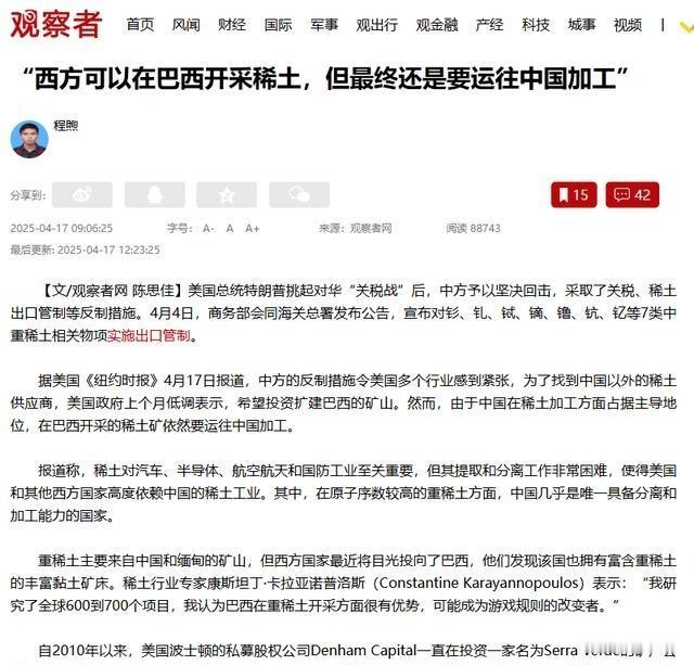 美国人只要咬紧牙关,就可以把稀土提炼出来,正确吗?答案是肯定的。稀土技术不是很难,每个国家都可以从开采到提炼全过程做出来,为什么这些国家都没有去做呢?因为没有规模。 稀土提炼的核心在于化工过程,主要用酸碱处理和萃取分离把矿石里的元素分开,再提纯成高纯度产品。这种方法在全球很多工业国家的实验室都能实现,美国科研机构早就掌握了提炼纯度99%以上的稀土技术,欧洲一些国家也类似。从开采到提炼的全链条,技术原理上各国都能独立完成,不算特别高深。可为什么美国等国家没大规模建起本土产业?关键卡在规模上,产量上不去,成本就控制不住,没法商业化运营。美国在上世纪有过稀土产业的巅峰期,本土产能一度占全球主导,但后来环保标准提高,运营费用不断上涨。中国靠大规模生产和完整产业链,拉低了成本,美国企业渐渐丢掉市场份额,很多矿区关停或只剩开采环节,提炼外包出去。 这些年,美国政府推动稀土本土回归,出台扶持政策,投了不少钱,但进展慢。数据显示,某美国稀土矿重启后,产出的精矿大部分还得运到国外加工,本土提炼产能只占一小块。建一条完整提炼生产线,需要配套连续萃取设备、废水处理和尾渣回收,这些设施投资巨大。如果产量大,这些固定成本能摊薄到更多产品上,单价就下来。但产量小,每单位产品的设备折旧、人工和环保费用就高,导致售价远超国际均价,企业赚不到钱。环保标准高是另一个痛点,提炼过程产生含微量放射性元素的废水废渣,处理严格,成本更高。对于小规模企业,这部分负担重,进一步挤压利润空间。 欧盟一些国家也试过本土稀土提炼项目,联合企业启动计划,想实现本地供应,但最终产能扩不上去,成本降不下来,项目拖拖拉拉。规模化是决定成败的关键,没有足够产量,投资没法回收,商业模式站不住脚。美国下游市场规模相对小,即使建起产能,也难消化产品,限制了扩张。产业生态重建需要时间,技术工人队伍、物流和供应链网络,这些都不是短期能凑齐的。稀土产业像很多重工业一样,技术可行不等于商业可行,规模经济往往是门槛。突破规模瓶颈,得解决成本、市场和配套一堆连锁问题,在全球格局已定的情况下,建立有竞争力的本土产业,难度大。 稀土技术门槛不高,但规模化运营是真考验。拿美国来说,早年实验室就能分离高纯稀土,可产业化时,环保法规严,处理废渣费用高,小产量根本扛不住。其他国家类似,尝试项目多,但卡在扩产上。规模优势让成本可控,没规模就赔本。推动本土回归的政策有,但效果慢,因为下游需求不足,产品卖不掉。产业链完整性也关键,从开采到应用,环节协同才能降本。短期复制难,需要长期积累。咬牙就能提炼没错,但建规模产业,得克服经济和市场障碍。