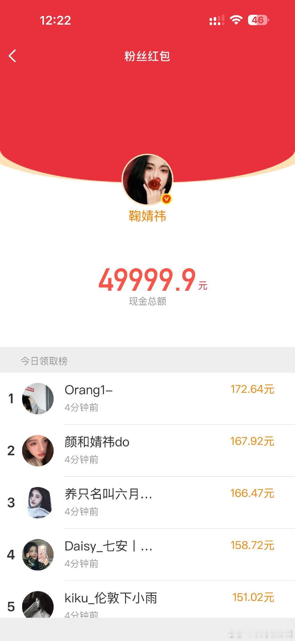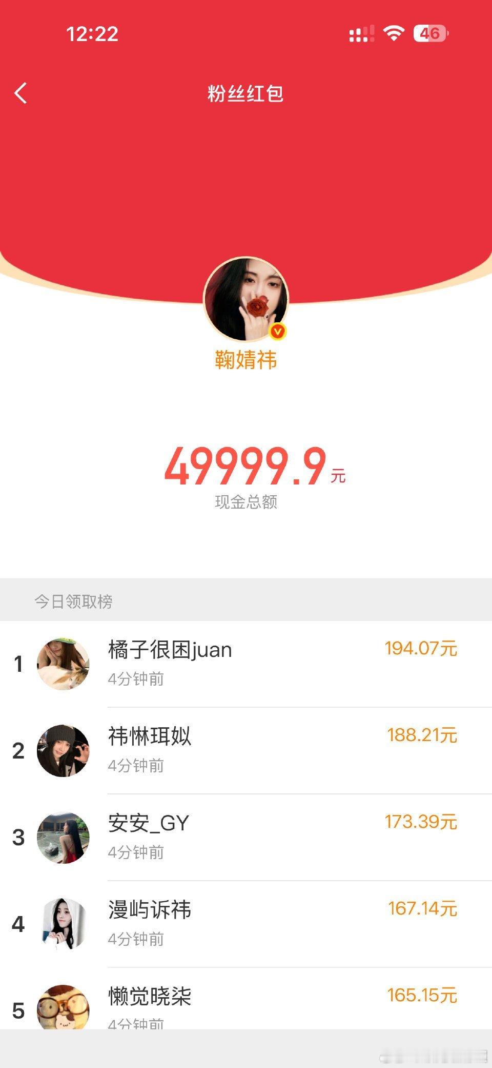 鞠婧祎发了20万红包内娱最大方的明星了吧,散财童子,散了20万红包。