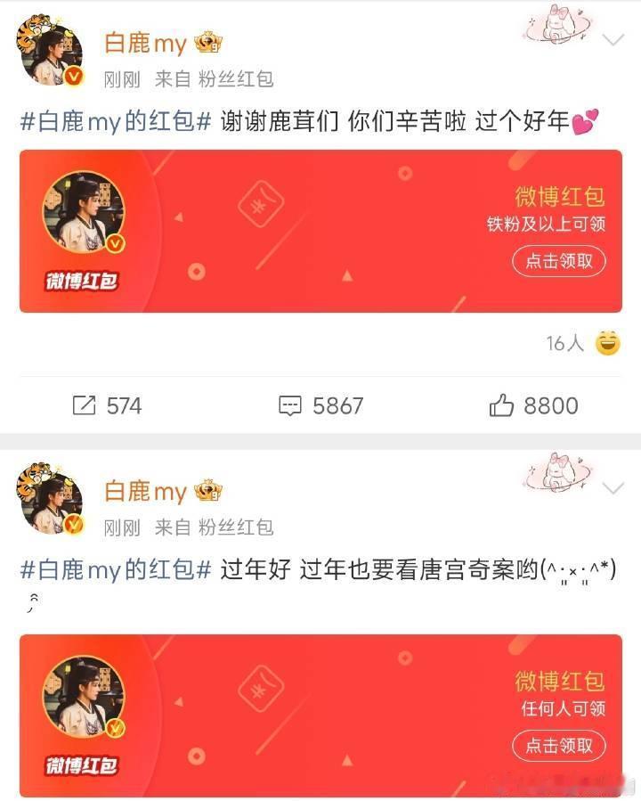白鹿连发了三个18888红包🧧谁抢到了明星红包