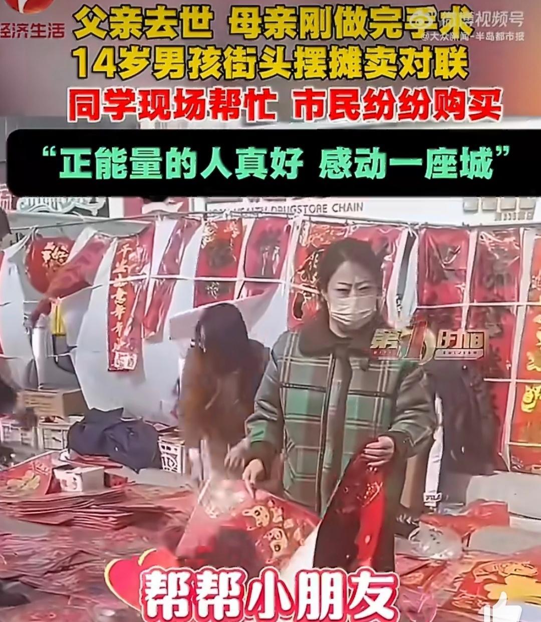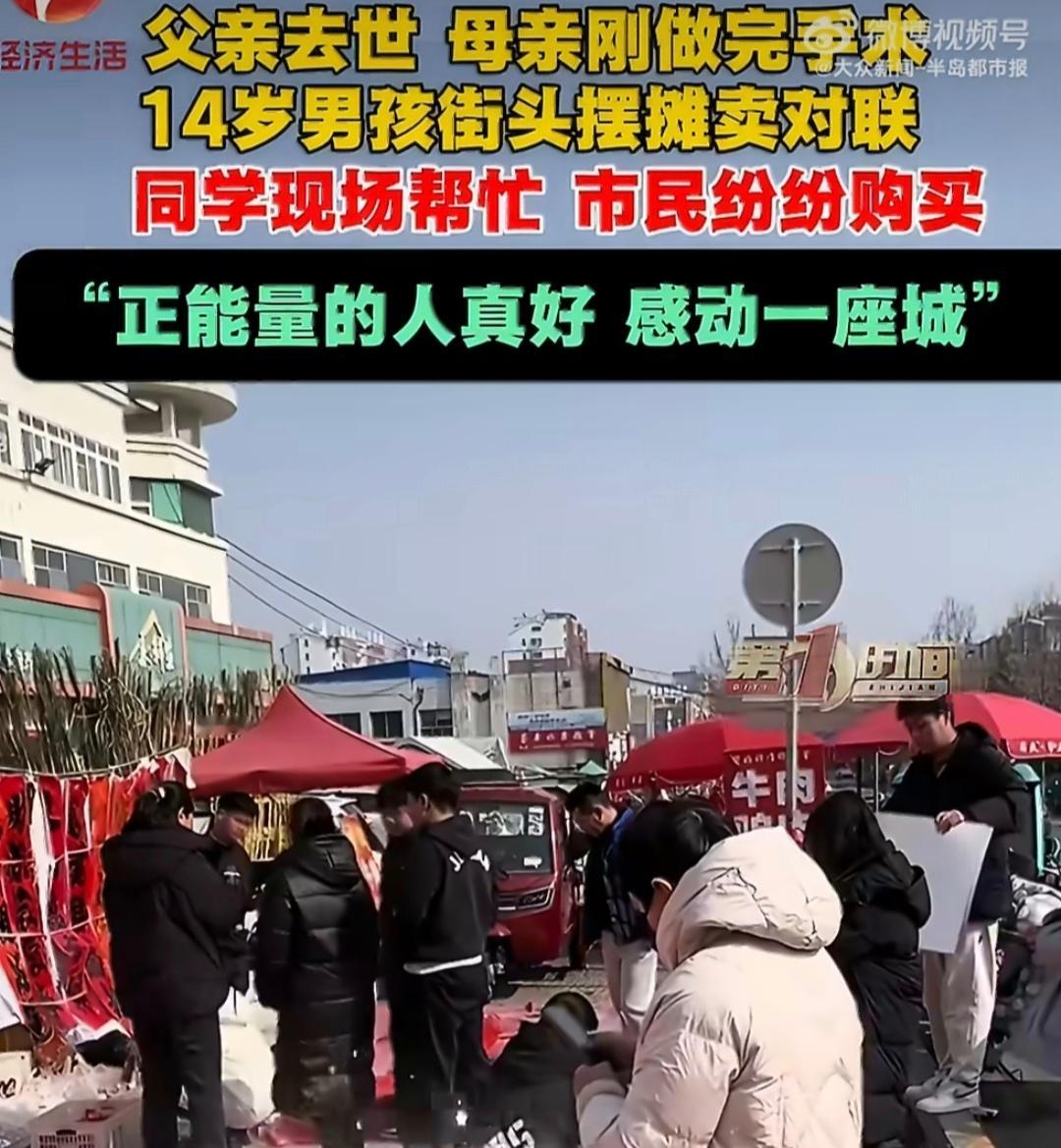 目击者回应男孩父亲去世摆摊卖对联命运以痛吻他,他却报以坚强。14岁少年面对家庭变故,不颓废、不妥协,寒风中坚守摊位,用行动诠释担当。苦难磨不灭骨气,困境挡不住成长。他用小小对联撑起希望,这份自立自强,是最动人的少年模样,愿苦尽甘来,未来光明。
