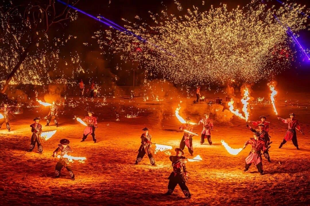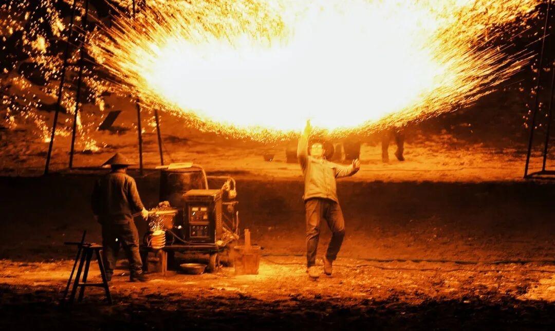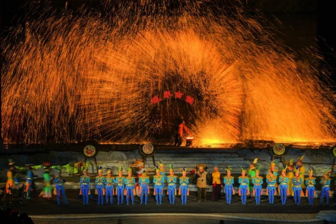 每晚七点,开封万岁山武侠城四千座剧场座无虚席。观众点亮手机灯光汇成星海,齐唱经典歌曲,为非遗绝技打铁花暖场。 七点半,十座炉火齐燃,匠人将1600℃铁水奋力击向夜空,刹那间金雨凌空、流光漫天。少林功夫、传统绝技在火雨中轮番上演,现场气氛热烈震撼。 有游客感慨,这场绚烂演出,让“国泰民安”四个字有了最直观的画面。 这门古老的非遗技艺,如今在开封、晋城、唐山、长沙等地景区焕发生机,成为夜游爆款,惊艳无数游客,尽显中式浪漫与磅礴气势。