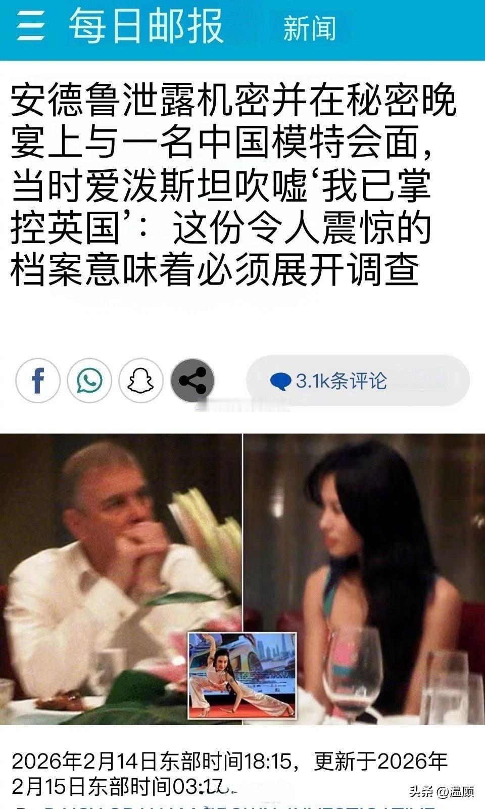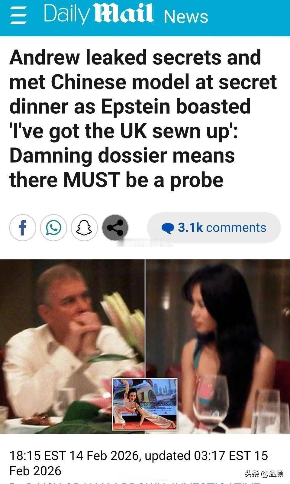 据《每日邮报》2026年2月14日报道,一份与杰弗里·爱泼斯坦相关的“毁灭性档案”(damning dossier),直指英国安德鲁王子在担任公职期间涉嫌泄露国家机密,并与爱泼斯坦的性交易网络深度绑定。 这份档案显示,安德鲁王子在担任英国贸易特使期间,将包括苏格兰皇家银行(RBS)救助计划、英中贸易关系外交电报等敏感信息,以及阿富汗赫尔曼德省重建项目的机密投资简报,直接转发给了爱泼斯坦。更令人震惊的是,在2010年的一次中国官方贸易访问中,爱泼斯坦为其安排了一场秘密晚宴,安德鲁王子在席间与一名中国模特会面,这一行为被指严重滥用了其由纳税人资助的公职身份。 在相关通信中,爱泼斯坦更是狂妄地吹嘘:“我已掌控英国(I've got the UK sewn up)”,并声称从安德鲁、前内阁大臣曼德尔森勋爵及一名“神秘第三人”处获取情报。这一言论不仅暴露了其对英国政要的渗透程度,也让安德鲁王子的行为显得愈发可疑。 该档案的曝光,再次将安德鲁王子与爱泼斯坦的性交易网络紧密联系在一起,引发了英国国内对其进行刑事调查的强烈呼吁。政界人士批评其行为“可耻”,甚至是“出卖国家”,而这一事件也无疑对本就风雨飘摇的英国王室声誉造成了又一次沉重打击。