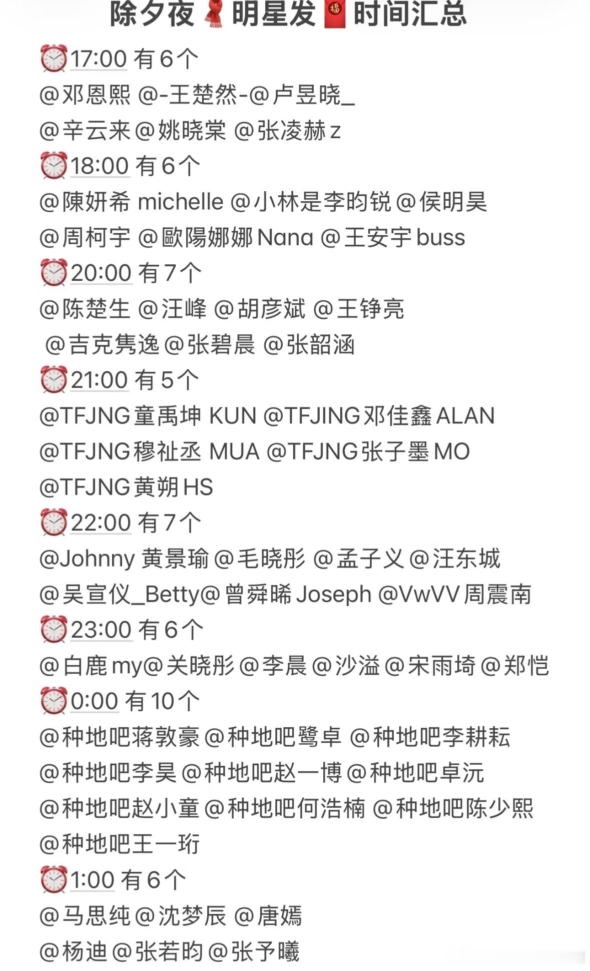 今天就是马年除夕啦,下面是今年明星发红包时间!17:0018:0020:00