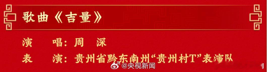 贵州村T和周深一起登上春晚周深春晚唱吉量 新歌首唱锁定春晚!五登央视春晚舞台,今年带来独唱《吉量》。歌名满满吉祥意,歌声满满治愈力,除夕夜一起期待!