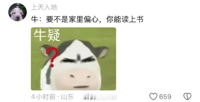 牛:要不是当初家里偏心,上学的就是我了