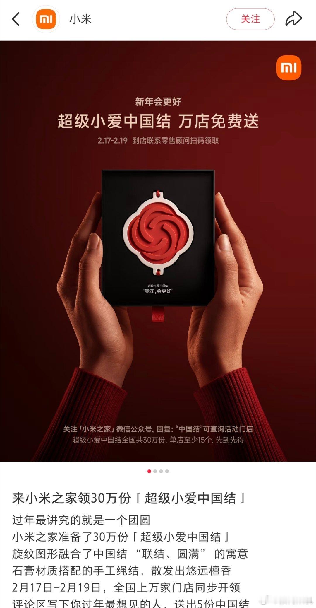 小米送中国结了,明天去我们这小地方看看还有剩不。
