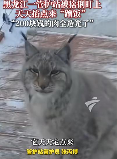 “太有灵性了!”近日,黑龙江大兴安岭,一只猞猁下山觅食,路过检查站时,管护员见它瘦得可怜,便喂了块肉给它吃,没想到这让猞猁把检查站当成了他的食堂,每天饭点都定时来,管护员不得不把肉都给它吃,自己只能吃素!网友:妥妥的“干饭搭子”! 近日,黑龙江大兴安岭一段视频在网络上火了。画面里,一只猞猁从林间慢悠悠地下山,毛色发灰、身形清瘦,走到公路旁的检查站时,还不忘抬头张望几眼,像是在“确认营业时间”。 管护员本来只是例行巡查,见它骨架明显、肋骨若隐若现,心一软,便拿出随身的一小块肉,隔着安全距离递给它。谁也没想到,这一喂,直接“打开了副本”。 第二天,猞猁准点出现。第三天,依旧准点。到了第四天,连管护员都忍不住笑了:这哪是路过,分明是来打卡的。 视频里,猞猁对检查站的布局已经相当熟悉,走到固定位置坐下,尾巴一甩一甩,目光锁定“窗口”,安静等餐。管护员调侃说:“它比我们还守时,饭点一到就来,迟一分钟都不行。” 随着视频传播,网友们迅速给这只猞猁起了外号——“检查站常客”“林区干饭王”“野生干饭搭子”。评论区热闹非凡:“这熟练程度,一看就是老顾客。” “人家不是饿,是认准这家了。”“管护员:今天我又被迫吃素。”还有人贴心地给猞猁配上字幕:“老板,老样子,不加辣。” 故事的“反转”也让不少人会心一笑。因为猞猁来得勤,管护员带的肉几乎都被它“包圆”。 视频里,几位管护员边笑边说,肉是给它吃的,他们只能啃馒头、吃青菜,“我们是食堂后厨,它是VIP”。 这份朴素又温暖的互动,让不少网友直呼“治愈”。有人感慨:“这不是投喂,这是在寒冬里互相成全。” 当然,也有理性的声音出现。有网友提醒,野生动物不宜频繁接触人类,担心形成依赖。 评论区随即展开讨论:一边是对管护员善意的理解,一边是对野生动物保护原则的科普。管护部门也很快回应,表示已对情况进行关注和评估,会在确保安全、符合规范的前提下处理, 避免猞猁过度靠近人类活动区域。这个回应,让热议多了几分冷静,也让温情故事有了专业的“底座”。 回到故事本身,最打动人的,或许不是“投喂”本身,而是那种毫不矫饰的善意。 视频里,猞猁吃得并不急躁,没有凶性,也没有畏惧,像是暂时把检查站当成了风雪中的避风港;而管护员没有靠近、没有逗弄,只是默默守着边界,把“分寸”留在心里。网友说得好:“这不是把野生变家养,是在最冷的时候,给了它一顿热乎的。” 随着话题发酵,“猞猁食堂”成了热词,相关视频点赞迅速破万。 有人把这一幕做成表情包:猞猁端坐,配字“我来吃饭了”;还有人调侃写段子:“检查站KPI完成情况——猞猁满意度100%。” 笑声背后,是大家对自然的亲近感,也是对守林人日常工作的关注与尊重。 寒冬的大兴安岭,风雪漫长。一只猞猁的准点“报到”,让冰冷的检查站多了烟火气,也让屏幕前的人感到一丝暖意。 或许等春天来了,它会回到更深的林子里,忘记这间“临时食堂”;但这一段被记录下来的相遇,已经成为这个冬天里,很多人记住的温柔瞬间。 网友最后总结得很贴切:“干饭是表象,善意才是主菜。”