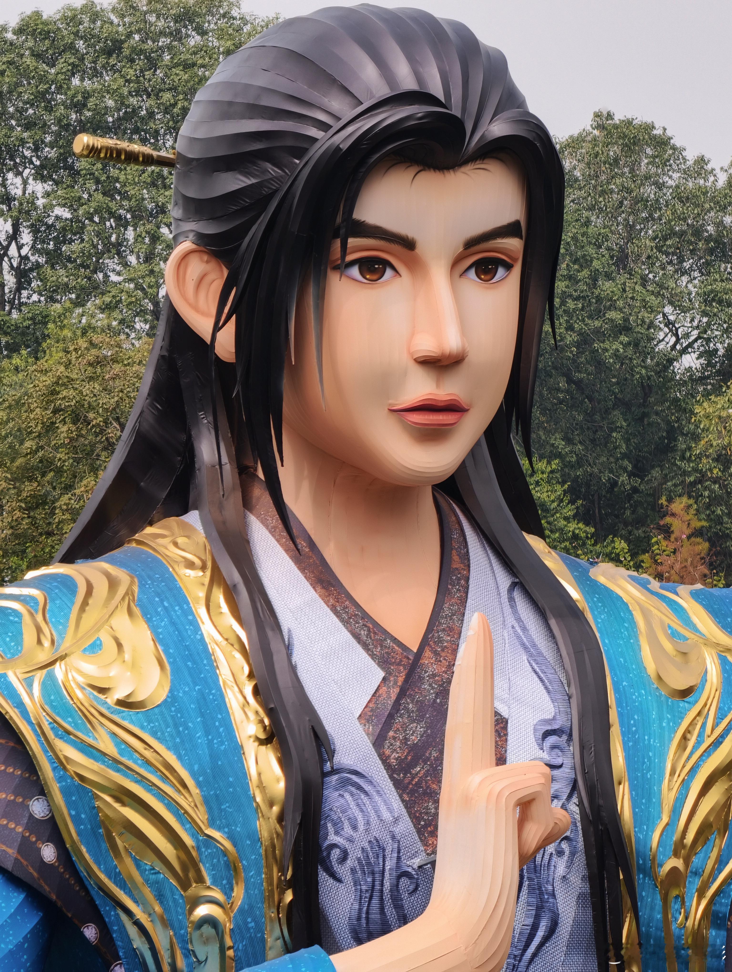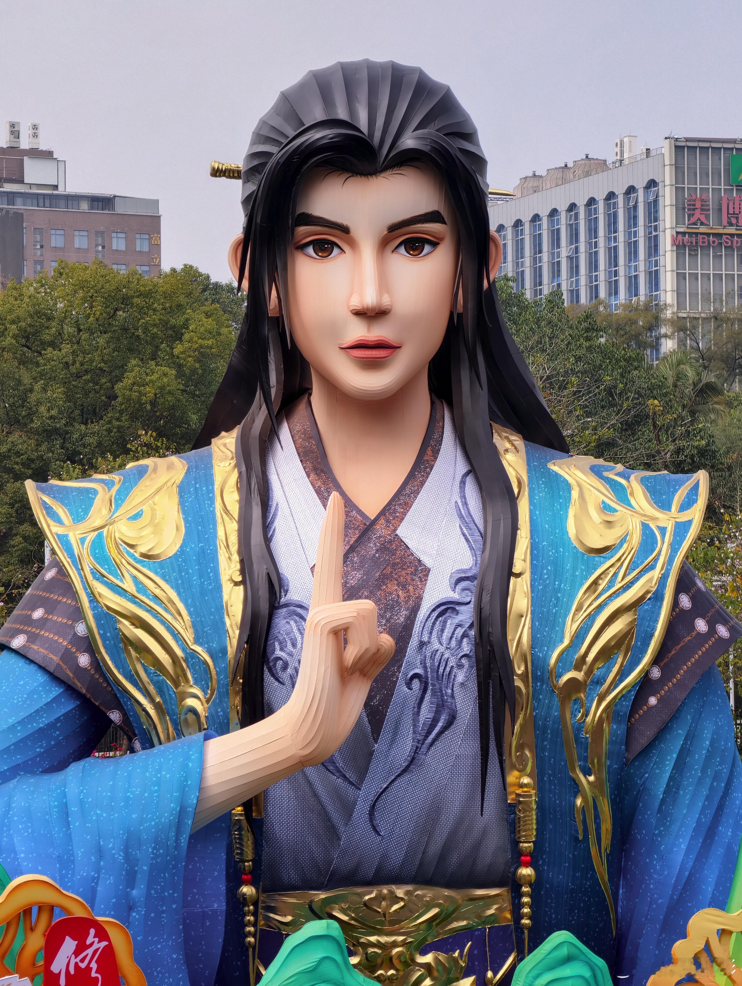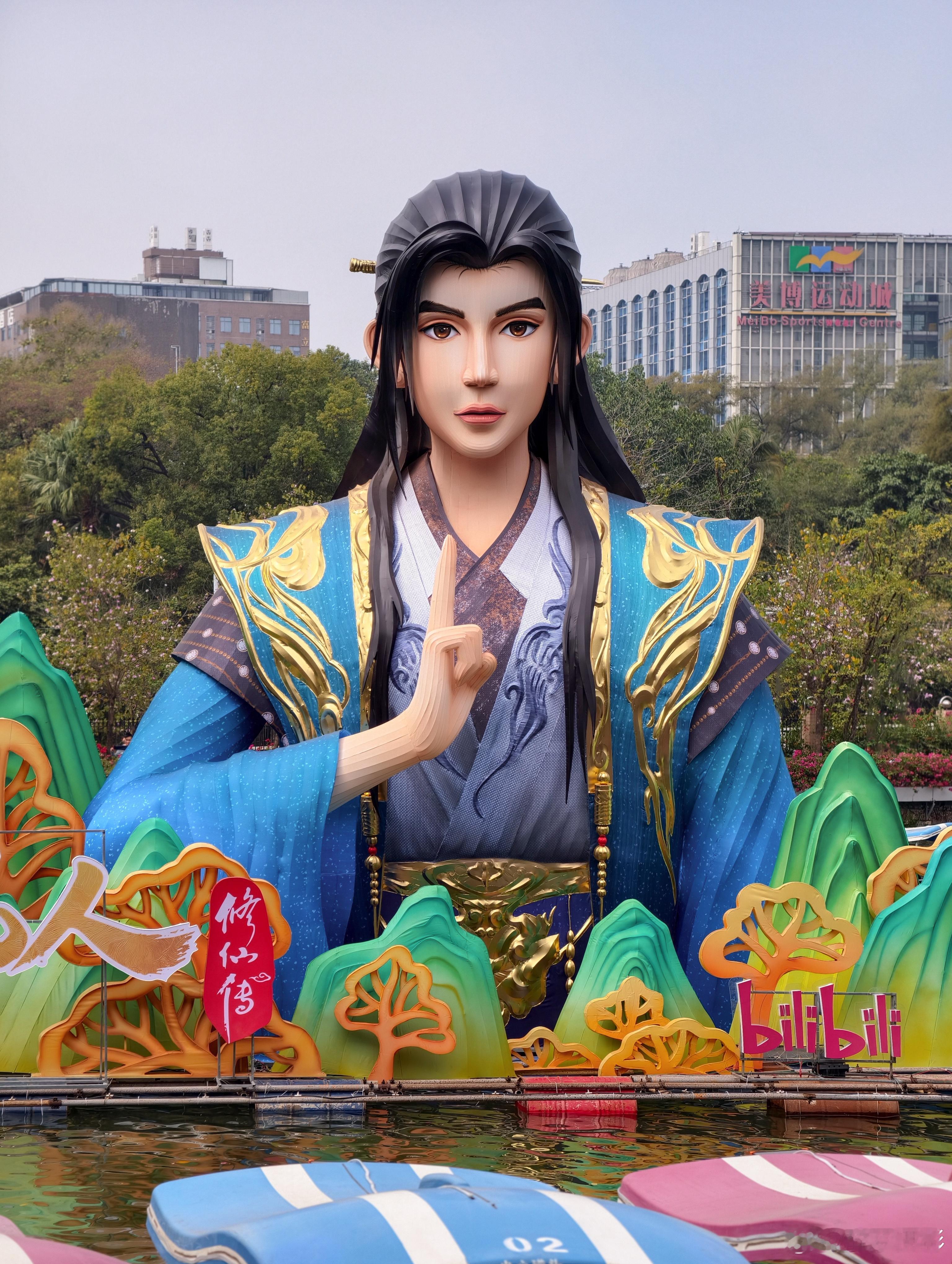 韩立雕像比三层楼还高!蓝金法袍随风飘,单手掐诀自带BGM,夜游花灯时抬头看,直接梦回《凡人修仙传》名场面~