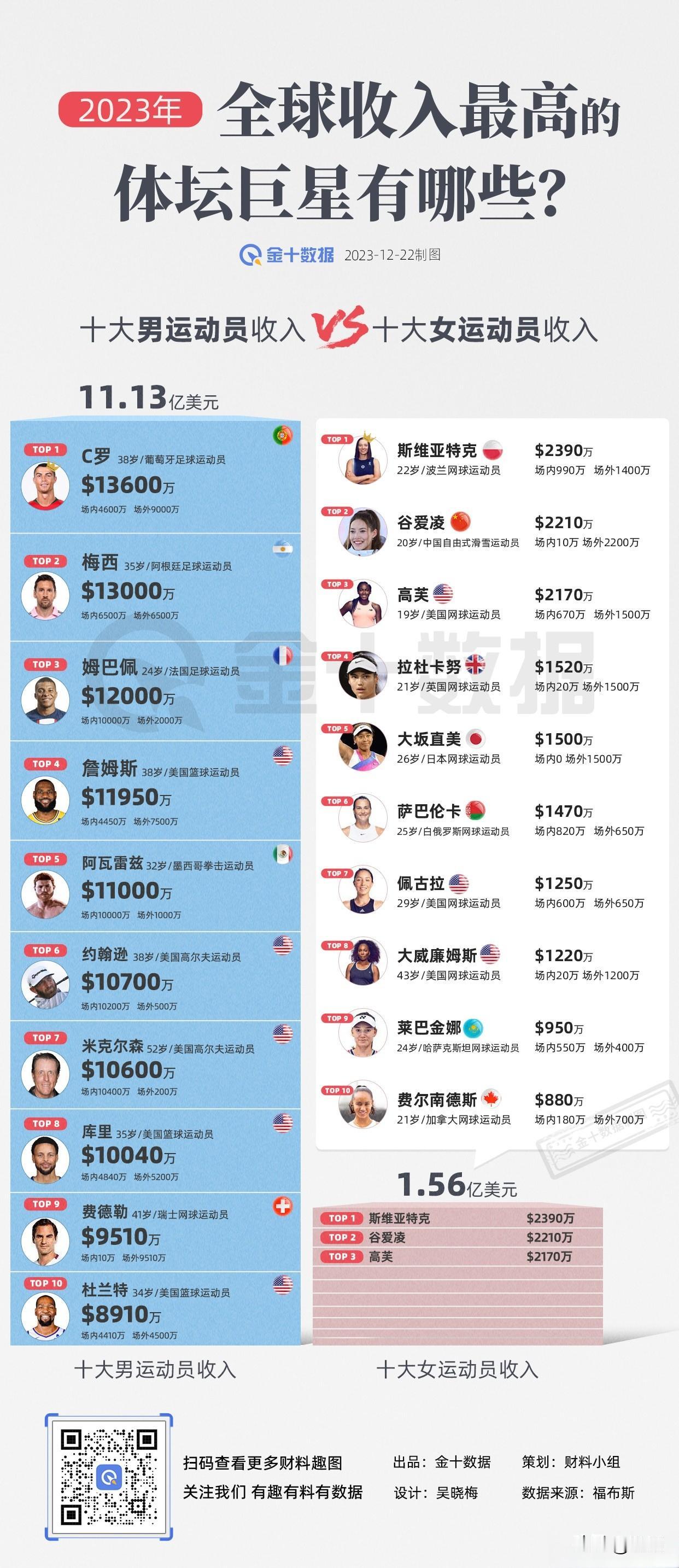 世界顶级运动的最高年薪(2025年)男女差别巨大,网球还行,看看篮球,库里是威