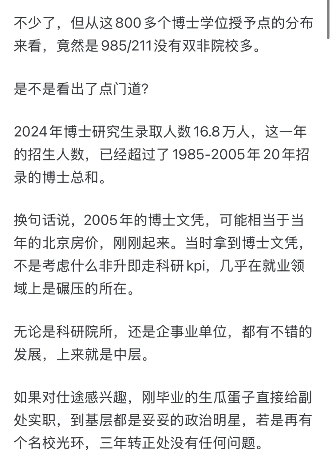 不少了,但从这800多个博士学位授予点的分布来看,竟然是985/211没有双非院校多。
