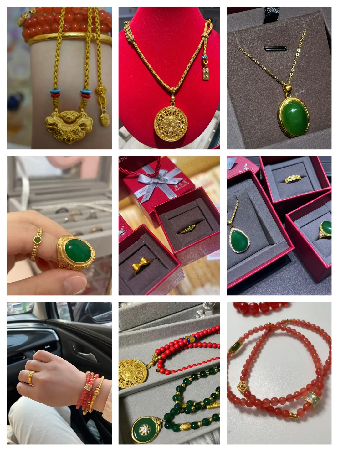 这大半年买的金首饰……差不多就这些了 还有些零散的小配饰 串在其它手串上了 总结 虽然不算多 但款式喜好固定