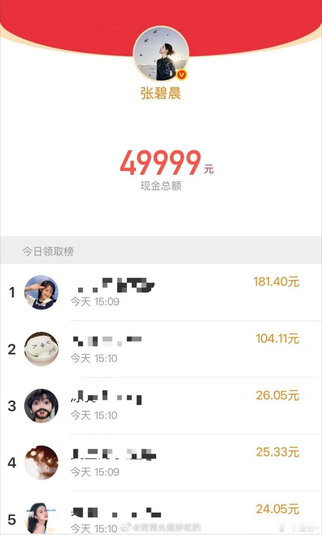 张碧晨晚饭后还有红包 第一波是谁的?反正我是张碧晨的!49999抢得我手都抖了,结果告诉我还有??姐姐你是不是对“发红包”有什么误解,这哪是发,这是撒啊!