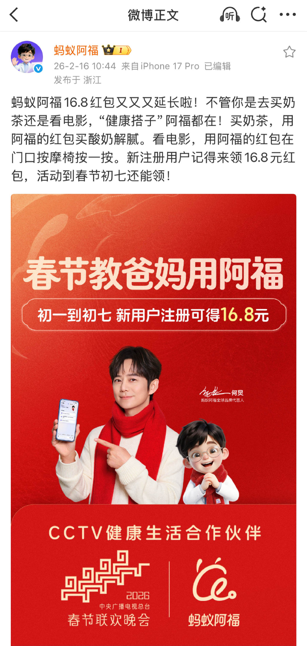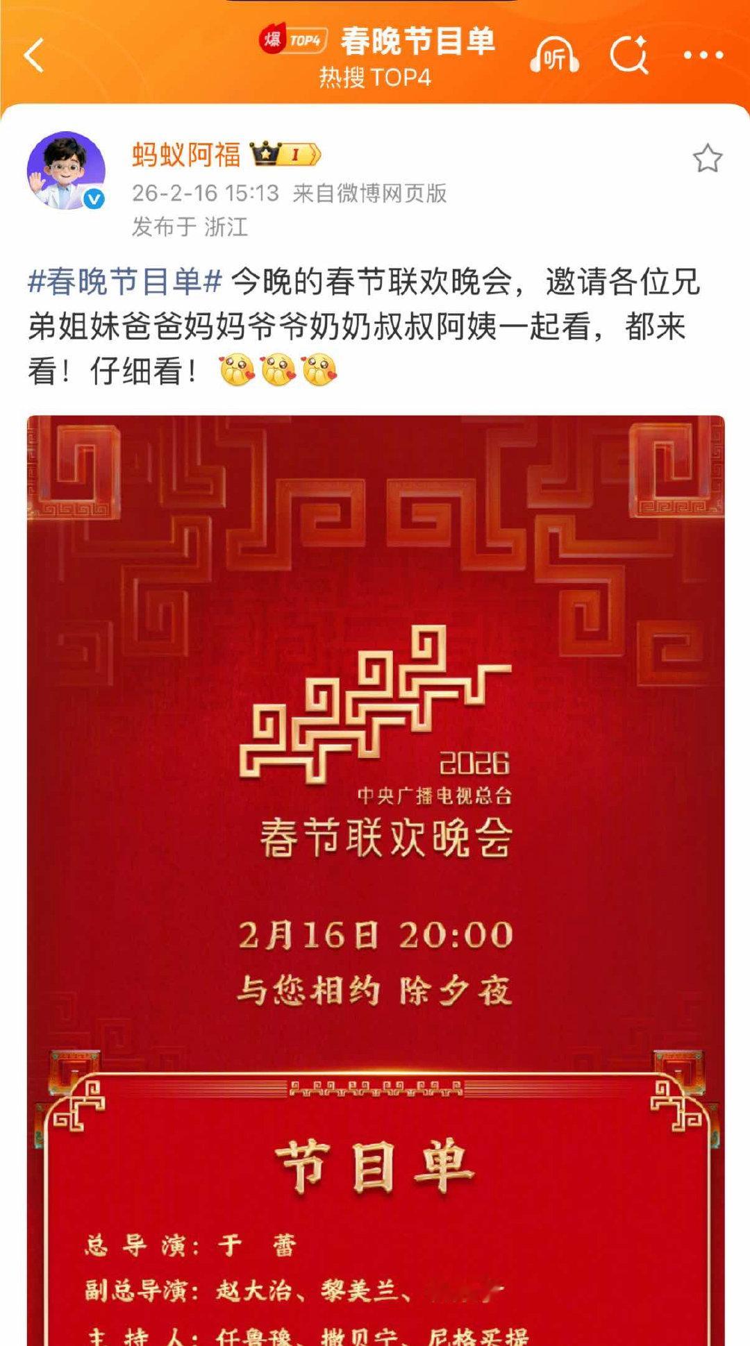 蚂蚁阿福上春晚了 吗?蚂蚁阿福疑似认领春晚节目单,阿福是要走到春晚舞台上了吗?趁现在赶紧把阿福装进爸妈手机,先拿下一个“春晚同款健康搭子”再说~