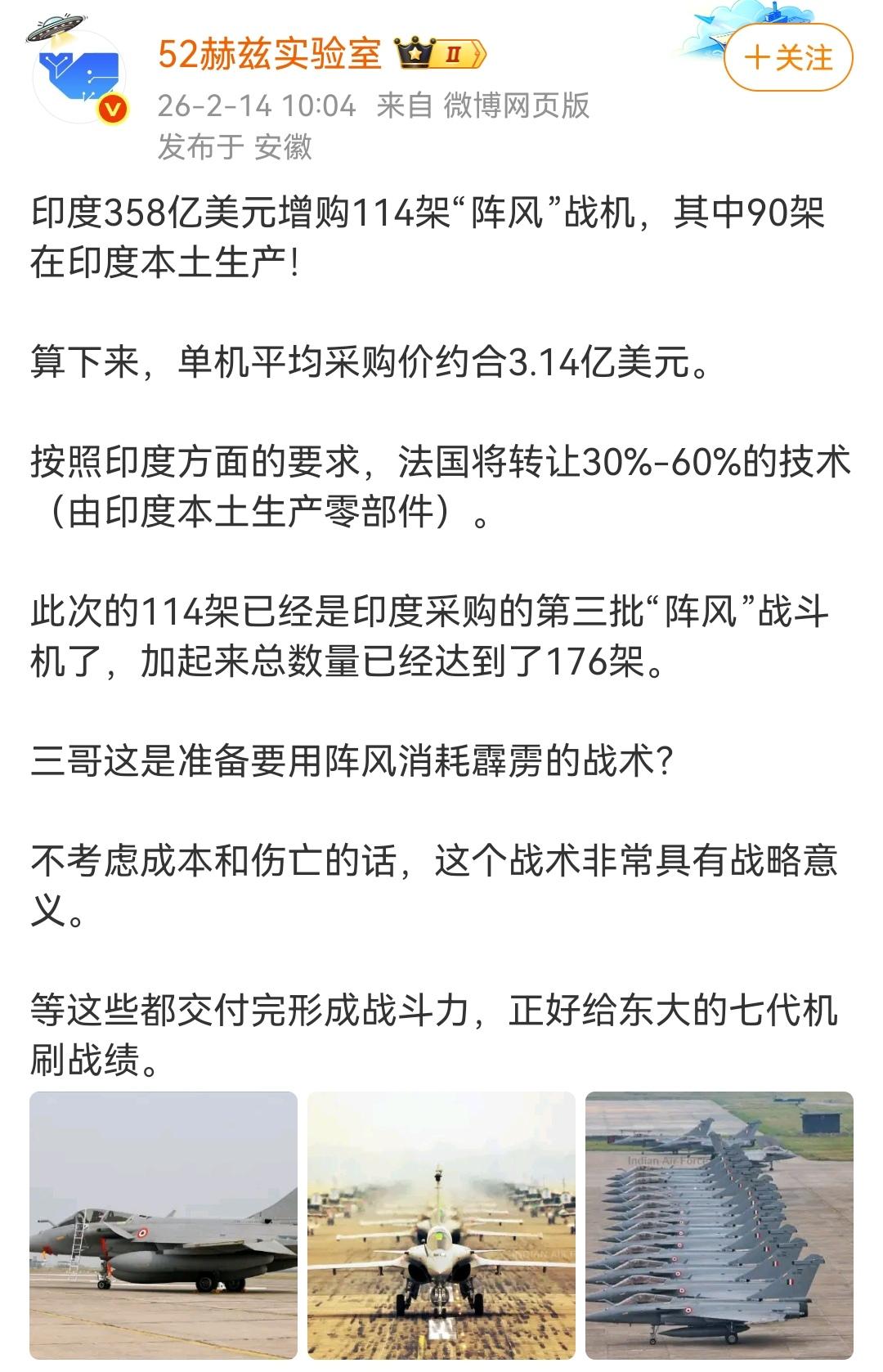 印度人一条道走到黑,继续采购法国阵风。 (如图所示)印度人不顾法国阵风战机的战损,继续下大单采购,还要求法方转让技术,在印度本土生产战机零件。旁观者只觉得印度人不可理喻,其实是印军没有其他更好的选择,只能一条道走到黑了,何况法方给回扣是出了名的。