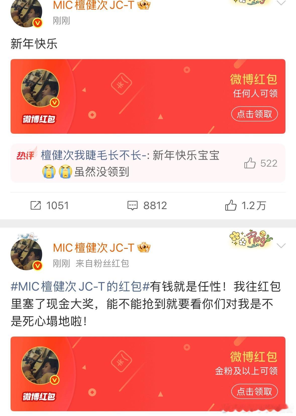 檀健次除夕夜发了12w红包🧧大哥大气!!!明星红包