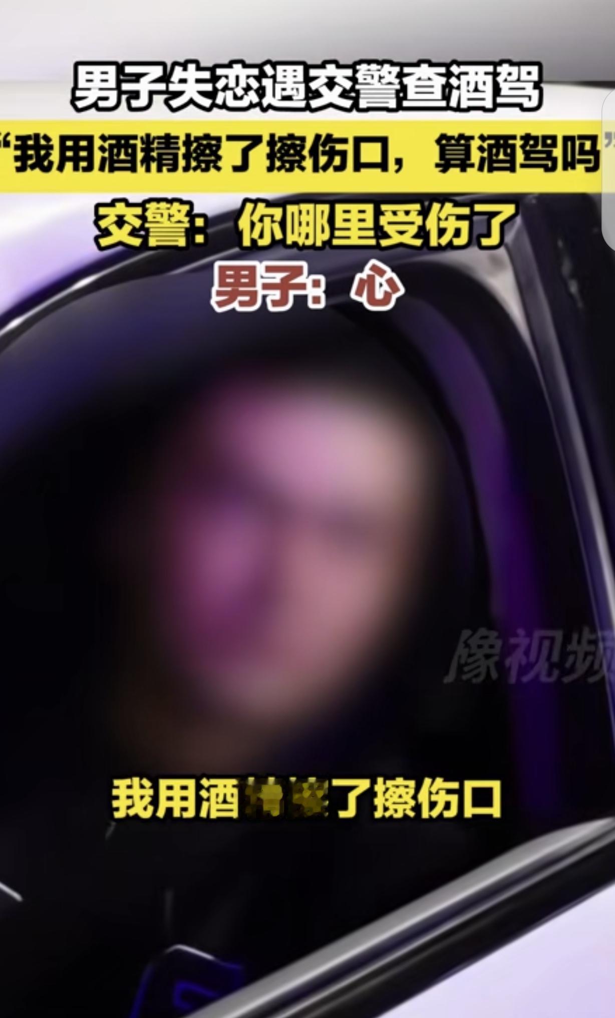 “原来违法也可以这么文艺!”新疆,一男子失恋后,借酒消愁,然后开车遇交警查酒驾,男子问交警:我用酒精擦了擦伤口,这算酒驾吗?交警问男子哪里受伤了?男子说:心!交警哭笑不得,问男子难道不知道酒后不能开车吗?你心情不好也不能搞自己呀?男子却说:我想去里面缓几天。网友:哎,阿达西,男人嘛!就是天上的雄鹰,一个鸽子飞走了,更多的鸽子来。 一个男子,遭遇了失恋的打击,整个人心情低落到了极点。 都说“一醉解千愁”,这男子就打算借酒消愁,一个人闷头喝了不少酒。 酒劲儿上头后,他也不知道咋想的,居然还开着车就上路了。 好巧不巧,路上正好碰上交警在查酒驾。这男子被拦下来后,估计是脑子还晕乎乎的,突然就来了句“我用酒精擦了擦伤口,这算酒驾吗?” 交警一听,都愣住了,赶忙问他哪里受伤了?这男子倒好,一本正经地回答:“心!”交警听了,那真是哭笑不得,这理由也太奇葩了吧。 交警强忍着笑意,严肃地问男子难道不知道酒后不能开车吗?还劝他说心情不好也不能这么折腾自己呀。 可这男子呢,就像铁了心似的,来了句:“我想去里面缓几天。”瞧瞧,这理由找得,真是让人无语。 其实啊,这男子心里估计也是苦得很。失恋的滋味不好受,那种心痛、失落、迷茫,就像一团乱麻,怎么理都理不清。 他可能觉得,找个地方躲一躲,暂时逃离这让人心碎的现实,也许就能好受点。 可他万万没想到,自己选错了逃避的方式,居然选择了酒后驾车这种违法的行为。 酒后驾车,那可不是闹着玩的。酒精会麻痹人的神经,让人反应迟钝,判断力下降。 在马路上开车,那可是分分钟都可能出大事儿的。 要是真因为酒驾出了事故,不仅自己会受伤,还可能会连累到其他无辜的人,到时候后悔都来不及。 这男子的事儿,也给咱们提了个醒。生活中遇到挫折和困难,那是难免的。 失恋了,心情不好,咱们可以找朋友倾诉倾诉,可以出去散散心,或者找个健康的方式发泄发泄。 有人说,算酒驾,因为你躺家里,爱咋擦咋擦,都是成年人,在路上,你是希望别人的家人也像你一样用酒精擦心里的伤口? 还怪文艺的呢,但是初中生物没学好,你从食管喝下去的酒精,根本就不经过心。 去里面缓两天挺好的,免得他想不开,去里面会碰到比他更惨的人,一对比就想开了。 用酒精擦了擦伤口,心!原来,男人细腻起来,也会这么伤感和文艺!爱,不分男女,让人痛彻心扉!无爱破全局!若知如此痛,当初还会入局吗? 这个男子的做法,真的是让人又心疼又生气。心疼他被失恋击垮,想用极端方式逃避,可生气他拿自己和别人的生命当儿戏。失恋固然痛苦,可这不是违法的借口啊。 总有人喜欢说“文艺病”,但文艺也得分场合,拿违法当浪漫,本质就是自私。 觉得自己心里苦,就不管不顾开车上路,完全没想过万一出事,会毁了多少家庭。 真要想清净,找兄弟喝喝酒、去戈壁滩吹吹风不行吗?非得选最蠢的那条路。 再说网友吐槽的“初中生物没学好”,这话糙理不糙。借“擦心伤”装深情,反倒暴露了拎不清。 成年人的崩溃,该藏就藏,该扛就扛,实在扛不住就去看心理医生,绝不能把情绪发泄到马路上。 《道路交通安全法》第91条,饮酒后驾驶机动车的,处暂扣六个月机动车驾驶证,并处一千元以上二千元以下罚款。 本案中,男子酒后驾车已涉嫌酒驾,他所谓“用酒精擦心伤”的辩解于法无据。 血液中的酒精含量达到酒驾标准就需担责,失恋情绪不能成为违法挡箭牌。 法律既保护个人情绪宣泄的权利,更优先保障公共安全,任性逃避的结果只会是承担更重的法律代价。 对此,你怎么看? 关注@运良说法 学法律知识不迷路