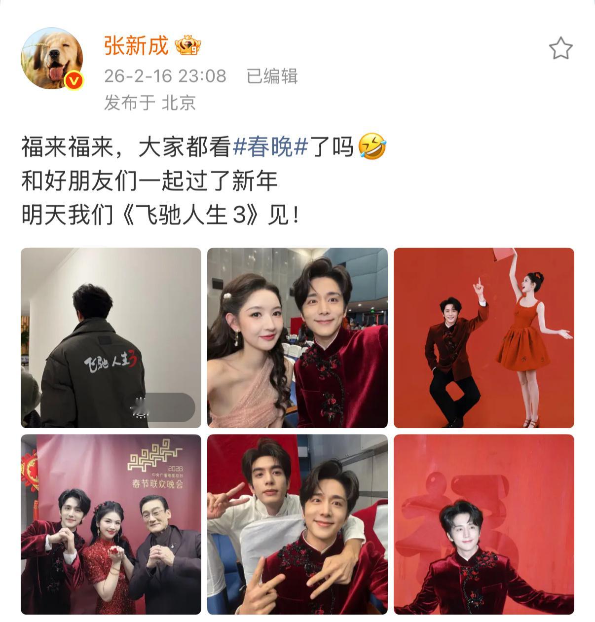 张新成宋威龙春晚合照张新成晒与宋威龙春晚合照,明天我们飞驰人生3见张新成晒与宋威龙合照春晚