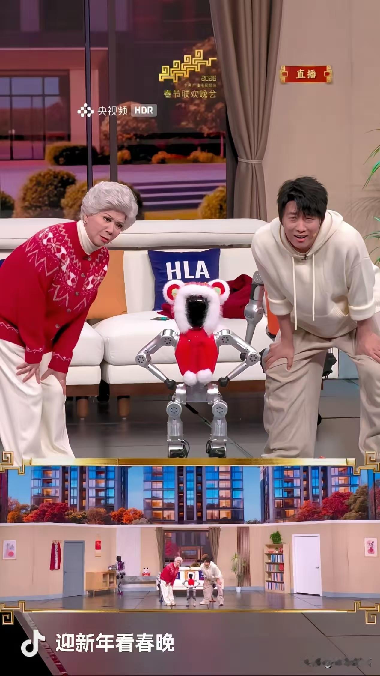 2026年的春晚舞台, 最先让我起鸡皮疙瘩的不是魔术, 而是蔡明的小品。 不是说不好,是那种“恐怖谷效应”拉满了!看着那个神态、动作都无限接近真人的机器人管蔡明叫奶奶,再配上现场稀稀拉拉的掌声,那叫一个赛博朋克。 我不禁想问,这到底是小品还是科幻片前奏?虽然去年机器人走路还得人扶,今年都能自如对话了,这技术迭代快得让人想唱一句“不是我不明白,这世界变化快”。 更没想到的是,台下还坐着那么多外国面孔,看着他们一脸震惊,估计心里在想:中国人过年已经进化到跟机器人唠嗑了?
