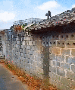 姐妹俩在山脚下的路边拍照,突然一块石头从山坡上滚落下来。流浪狗听到动静,赶忙起身