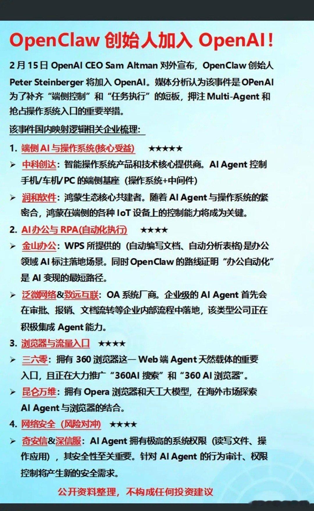 OpenClaw之父加入OpenAI。相关核心龙头股: