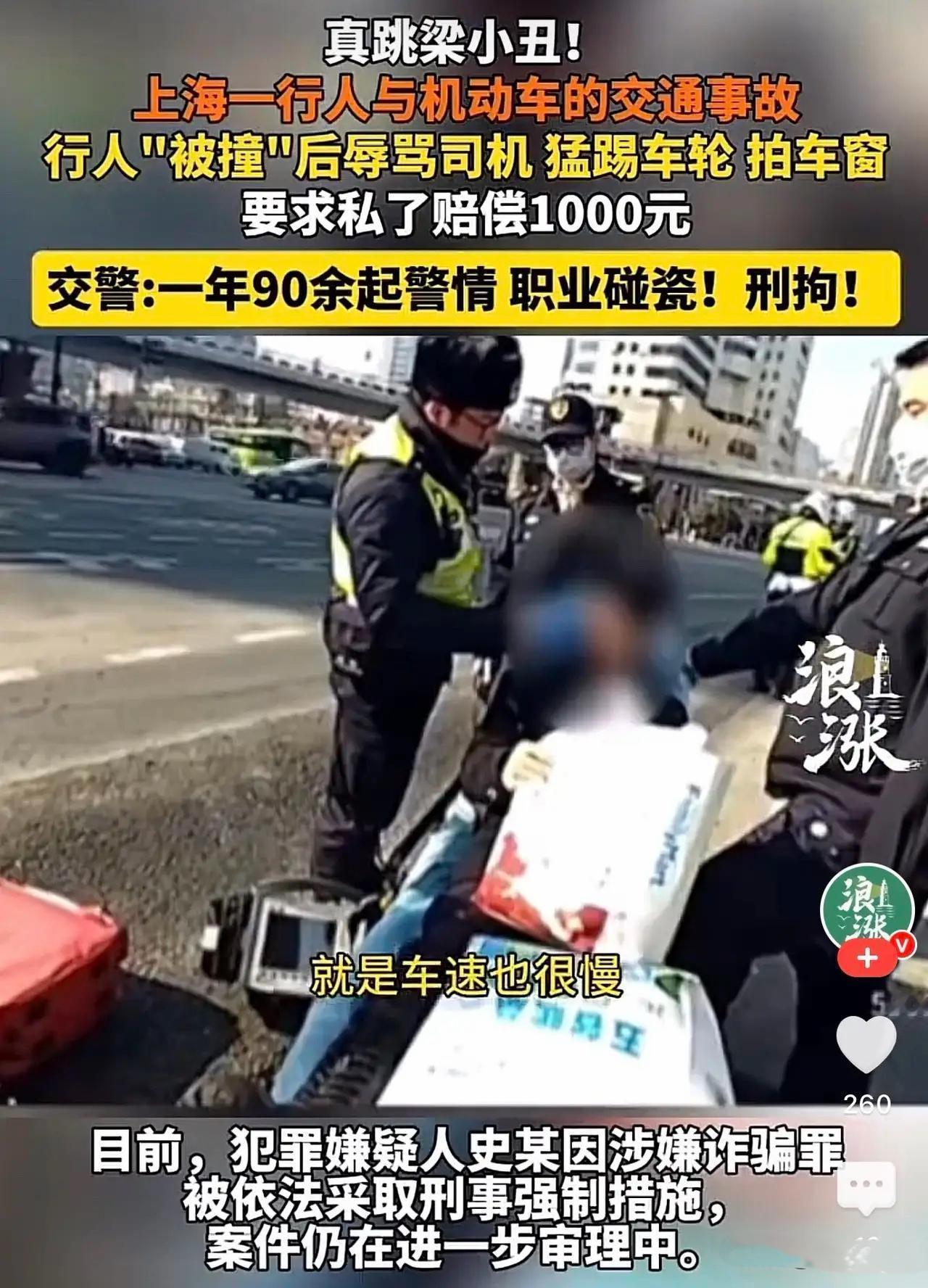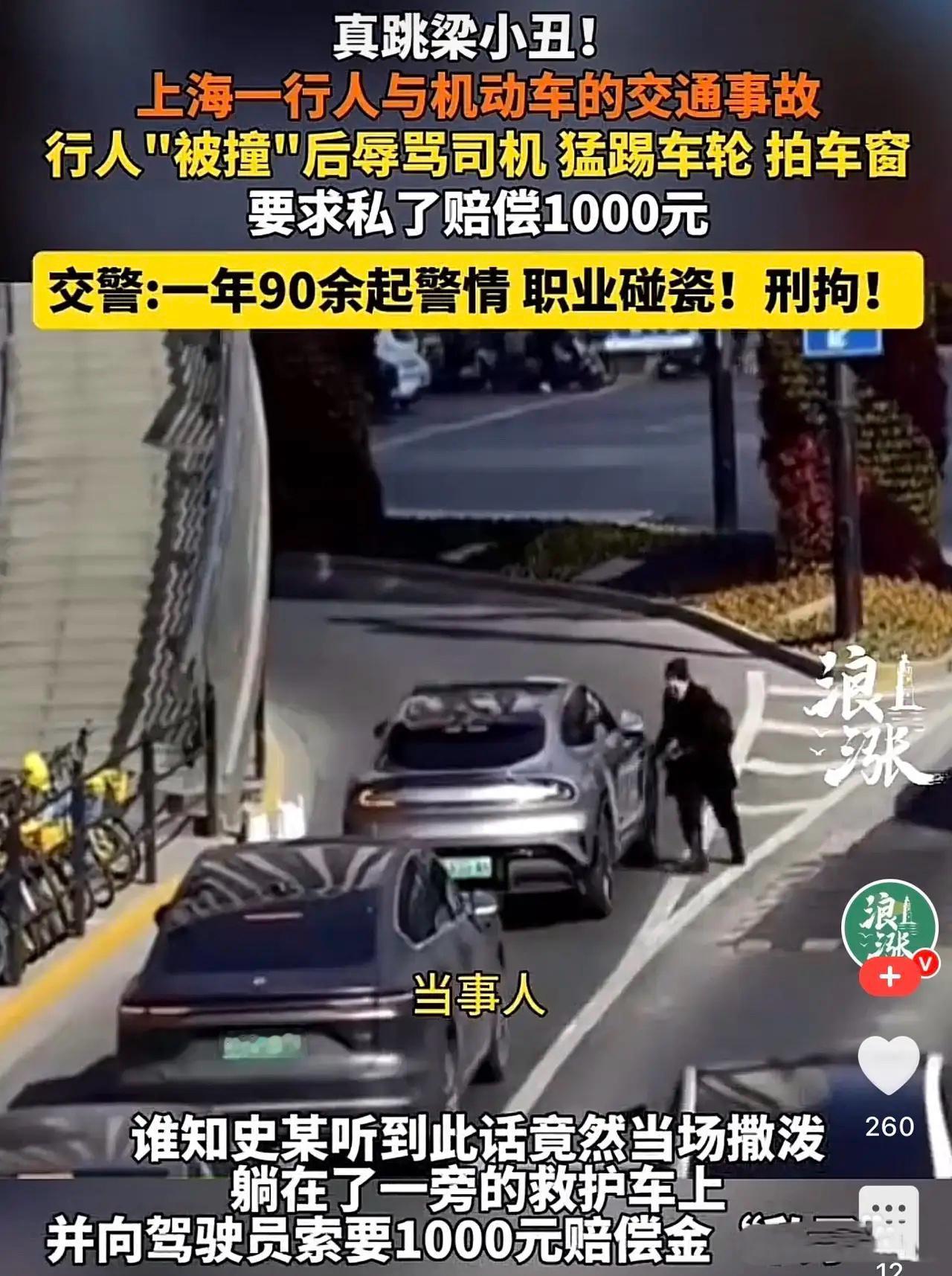 “给我1000块,这事儿就算了!”上海女子开车拐弯轧到男子脚,对方当场撒泼躺上救护车!交警一查:这人一年报警90多次!结局引起舒适 “我当时真以为撞到他了,心里还挺过意不去的。” 上海刘女士说起这事儿,到现在还觉得又气又好笑。 那天她开车经过一个拐弯路段,刚转过去,就听到车后方传来一声响。她心里咯噔一下,赶紧停车。还没反应过来咋回事,一个穿黑衣服的男人拎着塑料袋就冲到她副驾驶这边,对着车门就是一顿猛踹,嘴里还不干不净地骂着:“你眼睛长哪儿了?撞到人了不知道?” 刘女士被吓得不轻,赶紧下车查看。男人指着自己的脚说被轧到了,疼得不行,一边说一边龇牙咧嘴。刘女士看对方那副凶样,也不敢跟他掰扯,直接报了警,又打了120。 等交警和救护车都到了,事情开始有意思了。 交警到现场一看,先问那男人:“你从哪儿过来的?”男人指了指马路对面。交警又问:“这儿有斑马线吗?”男人愣了一下,说没有。 交警当场就给他普法了:“没有斑马线你横穿马路?这是违规横穿,你全责知道吗?” 刚才还又踢又骂的男人,一听这话,整个人像被点了穴一样愣住了。下一秒,他也不喊脚疼了,直接往救护车的担架上一躺,来了句:“行行行,我大人不记小人过,给我1000块钱,这事儿私了,我不追究了!” 刘女士都看傻了:刚才明明是你撞我车上讹我,怎么现在变成你不追究我了? 交警没搭理他这茬,直接开始查底细。这一查不要紧,查出来的东西让在场所有人都倒吸一口凉气——这个姓史的男人,在过去一年里,关联的110警情竟然高达90多次!而且其中绝大多数都是“交通事故”! 换句话说,这位大哥不是第一次“被撞”了,他是把碰瓷当成职业了。 警方调取监控一看,真相大白。当天的事故,根本不是刘女士撞到了史某,而是史某自己拎着塑料袋,故意往刘女士车上碰了一下,然后假装被撞,开始撒泼耍赖。他之所以选拐弯路段,就是因为司机视线有盲区,容易产生“是不是真撞了”的错觉。而他之所以敢这么干,就是吃准了大多数司机的心理:碰到行人,不管谁对谁错,多一事不如少一事,赔点钱拉倒。 这一招他玩了一年,玩了90多次。有些司机可能真给了钱,有些可能吵了几句走了,但不管怎样,他一直没翻车,直到碰上刘女士这个较真报警的,又碰上交警这个一眼看穿的老手。 从法律角度来说,史某这种行为就是典型的“碰瓷式诈骗”。根据相关规定,实施“碰瓷”,虚构事实、隐瞒真相,骗取赔偿,以诈骗罪定罪处罚。他用塑料袋故意碰车,制造“被撞”假象,让刘女士误以为自己真的撞了人,这就是虚构事实、骗取钱财。别看一次1000块数额不大,关键在“累计”——他一年干了90多次,哪怕每次骗个三五百,加起来也是一笔不小的数目。警方一旦查实他之前的诈骗行为,把这些数额累计起来,只要达到刑事立案标准,就可以追究他的刑事责任。根据刑法,诈骗公私财物数额较大的,处三年以下有期徒刑;数额巨大或者有其他严重情节的,处三年以上十年以下有期徒刑;数额特别巨大的,最高可判无期徒刑。史某具体会判几年,得看他这一年到底骗了多少钱,但有一点可以肯定——他这90多次“交通事故”,足够他把牢底坐穿好几回了。 这事儿传到网上,评论区直接沸腾了。“怎么90多次才刑拘?三五次就应该抓起来了!”“估计这男的看错了,以为碰的是法拉利,没想到是法拉米。”“我上次也碰到过这种人,明明没撞到,他非说我撞了,最后给了200块了事。现在想想,我是不是也喂饱了一个骗子?”还有网友说得特别到位:“这些碰瓷的,吃准的就是司机怕麻烦的心理。他们不是运气好,是咱们太好说话了。” 这个案子给所有司机提了个醒:在路上碰到行人,如果觉得可能有擦碰,第一件事不是赔钱私了,而是报警。你以为是省事,其实是给骗子送钱;你以为是花钱消灾,其实是助长犯罪。反过来想,如果每一个被碰瓷的司机都选择报警,像史某这样的人,根本不可能干到第90多次。 当然,也得给上海这位交警点个赞。一眼识破,当场普法,然后顺藤摸瓜揪出一个惯犯。这才是真正的“执法为民”。史某现在进去了,等着他的,是法律的严惩。 今日话题:你遇到过碰瓷的吗?当时是怎么处理的?欢迎在评论区分享你的经历,给大伙儿提个醒! 来源:综合上海警方通报、媒体报道