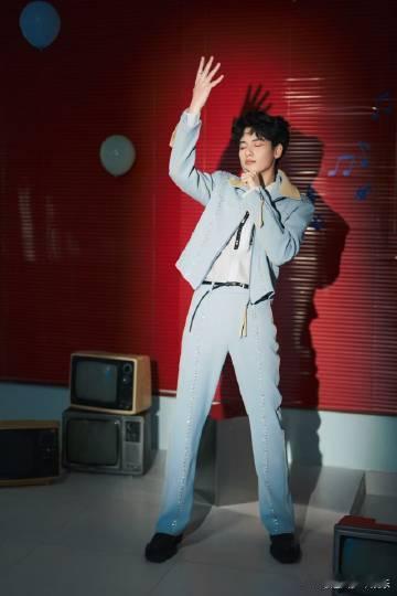 胡先煦星光冰蓝造型胡先煦冰蓝闪钻套装 胡先煦这次的冰蓝造型太有范儿啦!闪钻铆钉让整体造型更显精致,可爱卷毛又增添了几分亲和力,仿佛是复古画卷中走出的蓝玫瑰少年。我已经满心期待,就等在电视机前看他的《快乐小马》有多快乐啦!