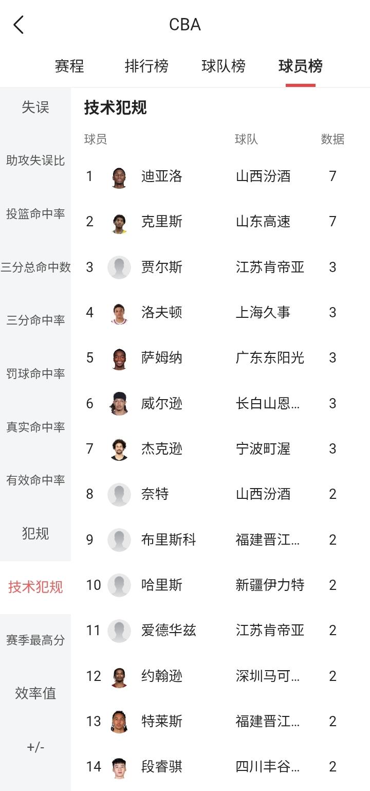 CBA第一阶段结束,奇葩榜单出炉。 技术犯规榜,山西队迪亚洛和山东队克里斯,两个人各7次,高居榜首,实至名归。 失误榜,广州队郭艾伦3.9次,高居榜首,郭艾伦常在河边走,哪有不湿鞋,带球多了,失误就多。 篮板榜,国内球员,只有周琦和徐昕上榜前10,周琦9.1次,排在第6,徐昕8次,排第10,篮板确实是中国男篮的软肋。