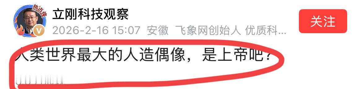 除夕这天,著名通信大师项总好像看到罗翔教授的视频了!! 项总隔空喊话罗教授:人类最大的人造偶像,难道不是你们所崇拜的上帝吗? 被卷入漩涡的罗教授,在春节前两天发出一条视频,疑似对近期被网暴做出了回应~ 视频有十多分钟,都是一贯的旁征博引,他的核心意思是说,不要把他塑造成偶像,凡是有这种想法的人,都是愚蠢的,只能成为榜样,但榜样是有缺点和瑕疵的,都是木字边,木头嘛,总有一天会腐朽~ 项总看到之后,隔空喊话,你们制造出来最大的偶像难道不是上帝吗?? 是不是啊,上帝是最大的偶像么? 我记得太平天国创始人洪秀全在创立拜上帝教的时候,很不顺,一度心灰意冷,他对他想发展成教徒的人说,你们这帮人啊,不拜真神拜偶像,让人失望! 这么看,上帝还真是不是偶像,是神! 项总,没事多学习啊,多做实事,少蹭热点!
