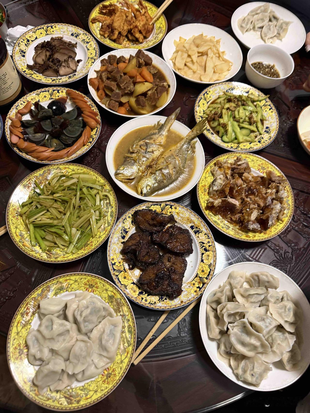 大家过年好!给大家拜年啦!昨天是除夕上午结束了过年的所有准备工作,吃完中午饭就开始忙年夜饭了,一直忙到晚上七点钟就开始吃饭了,我一共做了10个菜,夫人包的饺子两个人分工明确,吃完饭孩子一家就回自己家了,我们俩人就收拾好了冼漱完了就睡觉了,忙碌了一天也不能敖夜了,过了一个愉快的幸福的春节。原创。