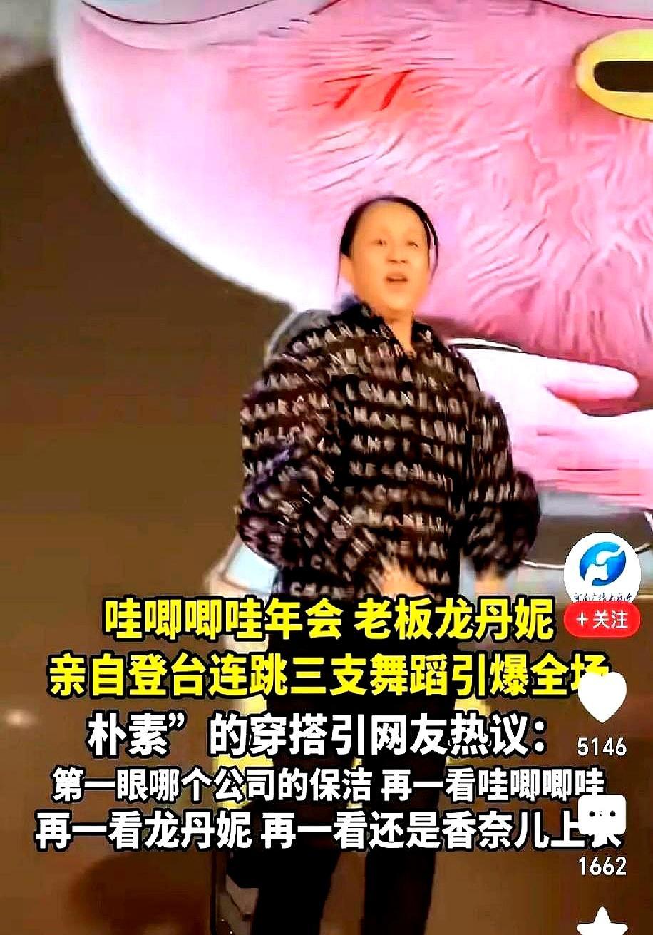 52岁的女老板,在自家年会上跳女团舞。动作僵硬得像在打太极。 台下坐着的顶流艺人们,表情从憋笑到生无可恋。视频瞬间炸了,全网都在问:这位穿着香奈儿跳出土味的大姐,到底是何方神圣?她就是龙丹妮,捧出李宇春华晨宇的选秀教母。 网友扒出陈年旧梗,把她的公司名“哇唧唧哇”谐音成“维嘉嫁我”。扯出她和李维嘉那些年被催婚的往事。其实两人早澄清了,只是老友。但挡不住看热闹的喊:舞是龙丹妮跳的,面子是前男友李维嘉丢的。 52岁,不端着不藏着。原来活得尽兴,才是最高级的体面。