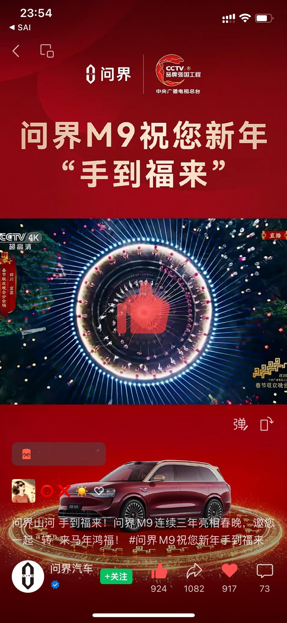 今年春晚守着电视,最期待的除了饺子,竟然还有一位“老朋友”——问界M9。当《手到福来》的旋律响起,那种心情真的像是赴一场“又一次重逢”的约 。