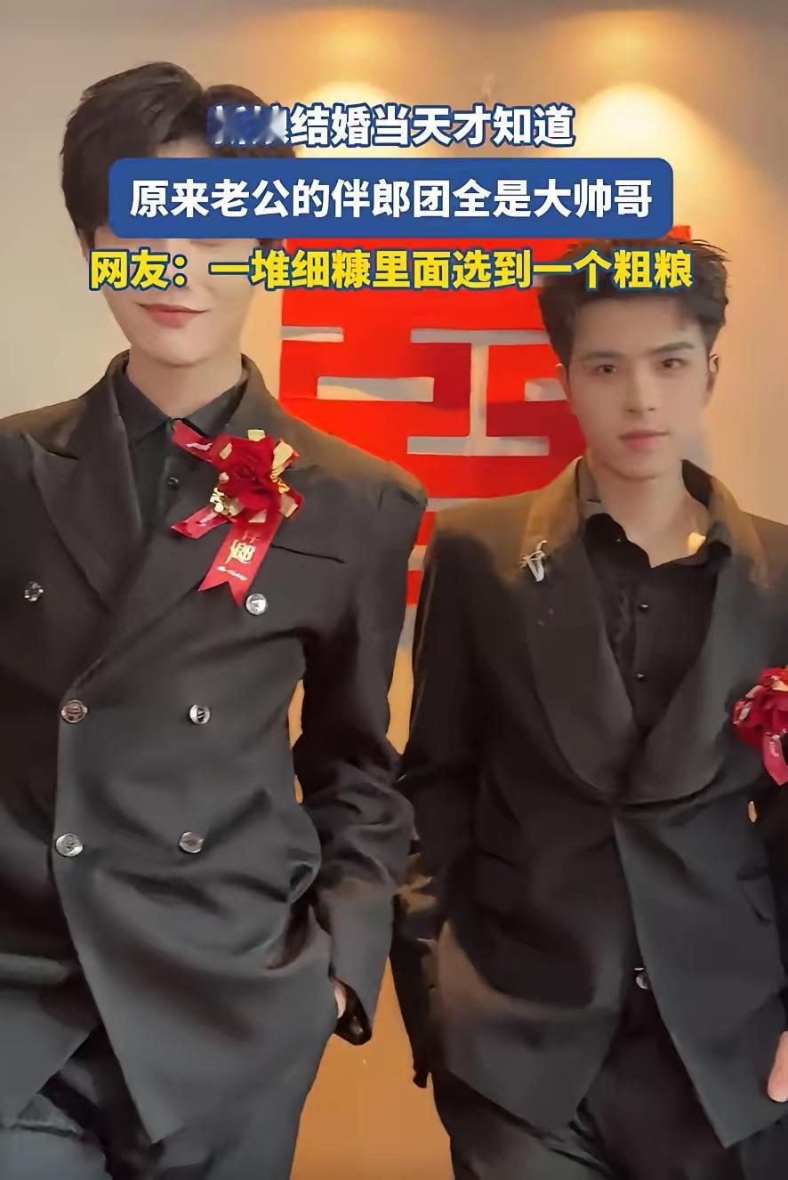 “婚礼现场新娘当场傻眼!老公伴郎团全员帅哥,网友炸锅:你确定他是新郎不是经纪人?” 在浙江某地的一场婚礼上,发生了一幕让全场宾客忍俊不禁、又令新娘哭笑不得的“高能”场面——新娘精心打扮、满怀期待地走上红毯,准备成为人生中最闪耀的焦点,结果一抬头,却发现自己未来的丈夫站在一群伴郎中间,瞬间“隐身”了! 怎么回事?原来,新郎请来的伴郎团,清一色黑色西装、身高接近180、五官端正、气质出众,站成一排活脱脱像刚从偶像练习生节目里走出来的男团组合。而新郎本人,虽然也穿着笔挺西装、手捧鲜花,但在这群“颜值天花板”的衬托下,硬生生被比成了“幕后工作人员”——有网友调侃:“这哪是新郎接亲,分明是经纪人带着自家艺人来走红毯!” 新娘事后回忆说,她当天凌晨四点就起床化妆做造型,满心欢喜地想着今天自己一定是全场最耀眼的存在。可当她走进婚礼现场,看到那排整齐划一、笑容得体、气场全开的伴郎团时,整个人都懵了。“我第一反应是:这些人是谁?怎么从来没见过?第二反应是:我老公站哪儿呢?找了半天才在边上看到他……” 更让她哭笑不得的是,这些伴郎不仅颜值在线,举止也相当绅士。有人帮她提裙摆,有人递水递纸巾,还有人悄悄提醒她别踩到婚纱。整个过程礼貌又周到,完全不像临时凑数的朋友,倒像是专业婚礼团队。 消息传到网上后,迅速引爆热搜。新娘结婚当天才知道伴郎团全是帅哥 话题阅读量短短几小时突破千万,评论区更是热闹非凡: “我怀疑新郎是不是开了家MCN公司,伴郎都是他旗下的签约艺人!” “这不是结婚,这是大型男团出道发布会吧?” “新娘:我以为我是女主;现实:我是来看男主团的。” “别慌,说不定你老公是这群人里最有钱的那个!” “我老公的朋友圈全是秃头程序员,你这已经赢麻了好吗!” 当然,也有不少过来人表示理解:“其实很正常啊,男人交朋友真不看脸。能一起打游戏、喝啤酒、聊人生的,管他帅不帅?但女生第一次见,视觉冲击确实大。” 事实上,这场“颜值反差”背后,恰恰折射出婚姻中一个常被忽视的真相:结婚,从来不只是两个人的结合,更是两个社交圈的交汇与融合。 新郎的这群伴郎,有的是他大学室友,有的是创业伙伴,还有一位是从小一起长大的发小。他们平时各忙各的,分散在全国各地,只有在人生重要时刻才会聚在一起。而婚礼,正是这样一个“朋友圈大集结”的场合。新娘此前从未见过他们,自然会被这突如其来的“高颜值暴击”震撼到。 但有趣的是,随着婚礼流程推进,新娘的心态也悄然发生变化。她发现,这些看起来光鲜亮丽的伴郎,其实各有各的可爱之处:有人偷偷塞给她一颗糖缓解紧张,有人在敬酒环节主动帮新郎挡酒,还有人悄悄对她说:“你放心,他虽然长得一般,但对我们兄弟特别仗义,对你更是一心一意。” 那一刻,新娘突然明白了:真正的魅力,从来不只是皮囊,而是日积月累的信任、陪伴和担当。 而新郎虽然在颜值上“输了”,但在行动上却赢了全场。他全程紧张又认真地完成每一个仪式,眼神始终追随着新娘,哪怕被伴郎团抢了风头,也毫不在意。有宾客拍到他在后台反复整理领结、深呼吸给自己打气的样子,那份笨拙又真诚的爱意,反而比任何帅气都更打动人心。 这场婚礼最终在欢声笑语中圆满落幕。新娘后来在社交平台发文:“谢谢我的‘男团’伴郎们,让我看到了老公不一样的朋友圈;更谢谢我的老公,虽然不是最帅的,却是最坚定选择我的那个人。” 如今,这对新人的生活早已回归平静,但那段“伴郎团抢镜”的趣事,却成了他们爱情故事里最生动的注脚。 说到底,婚姻不是选偶像,而是选战友。 你可以有一群闪闪发光的朋友,但真正陪你走过风雨的,永远是那个愿意为你低头系鞋带、深夜给你煮面、在你生病时守在床边的人。 所以,别被一时的“颜值对比”吓到。 真正的幸福,不在伴郎团的脸上,而在新郎看你的眼神里。伴郎哥