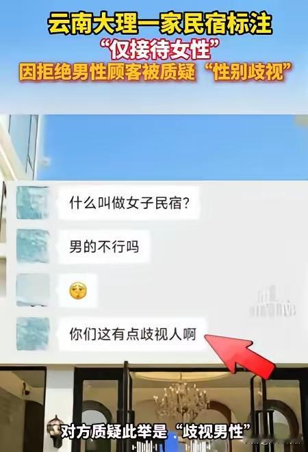 这个事件其实涉及多个层面的问题,既有情感和社会认知的冲突,也有法律法规的界限探讨。以下是我的一些看法和分析: 一、民宿只接待女性,是否算性别歧视? 不算传统意义上的性别歧视。 法律角度: 《消费者权益保护法》和《民法典》都强调“无正当理由”的性别歧视才构成违法。这家民宿基于保障女性旅行安全的合理考虑,且公示明确,消费者有选择权,属于合法的经营定位。 类比女厕所、女性专用空间,社会和法律都有对特定群体提供专属场所的认可。 实际需求: 女性独自旅行常面临安全和隐私担忧,混住民宿存在诸多不便和压力。设立女性专属民宿,是满足特定需求的服务创新。 二、男顾客情绪激烈的原因? 消费权利观念:他可能觉得既然花钱了,理应获得服务,不应以性别为由被拒绝,产生了被排斥的心理落差。 社会性别认知差异:部分男性不理解或不认同为特定性别设立隔离空间的必要性,导致情绪激动。 沟通和情绪管理:民宿小姑娘的解释可能无法有效缓解他情绪,导致对峙升级。 三、社会上的不同声音如何理解? 支持派强调安全和女性体验,认为这类民宿有存在的必要和合理性。 反对派更多是从公平、普遍适用的原则出发,质疑性别为由的限制是否合理,担忧双标和潜在的商业噱头。 四、如果是我,遇到这样的民宿,我会怎么做? 作为女性,我很理解也支持这类女性专属民宿的初衷,会优先选择这类民宿保障自身安全。 作为男性,若遇到不接待男客的民宿,我会尊重店家的经营定位,选择其他宾馆、民宿,避免因小失大,不必非要硬闯或冲突。 五、对该事件的理性建议 店家应加强对外说明的透明度和友善沟通,尽量避免引发冲突。 消费者在遇到不符合自身需求的经营场所时,应理性接受、多找备选方案。 社会应更多关注不同群体的合理需求和心理感受,培养包容和平等的性别认知。 总的来说,这家民宿的做法不是恶意歧视,而是基于安全考量的合理区分;男顾客的权益事实上没有被侵害,只是心理上感到被拒和不满。理解彼此诉求的同时,尊重法律和现实需求,是解决此类问题的关键。 你怎么看呢?如果是你,会支持这类“女性专属民宿”的定位吗?遇到类似情况,会如何处理?欢迎分享你的看法。酒店争议 对女性歧视