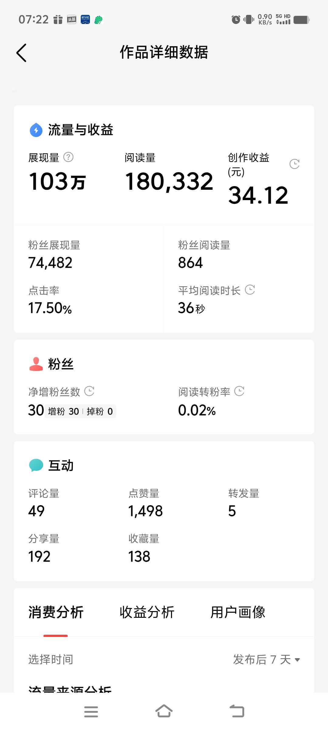 今日头条百万展现量内容的爆款属性判定与实证研究 在算法推荐主导的内容分发时代,展现量是衡量内容传播效能的核心指标。本文立足今日头条平台机制,结合流量分级体系与创作者实证数据,系统论证单篇内容展现量突破100万即属于“大爆款”的核心判断,明确爆款的量化标准、算法逻辑、数据特征及领域差异,为内容创作提供参考。 一、引言 今日头条依托个性化推荐算法构建了覆盖图文、视频等内容形式的生态。内容从发布到触达用户,遵循“冷启动—流量池递进—衰减”的完整链路,展现量直接反映平台认可度与用户触达规模。 平台虽未公布绝对“爆款”阈值,但经多年创作者实践与数据统计,行业内部已形成共识性流量分级体系。本文以此为基础,剖析百万展现量为何能被明确判定为“大爆款”。 二、流量分级:百万展现的行业共识 根据头部账号及爆款案例追踪分析,可提炼出以下流量分级标准: 常规流量级(10万以下):内容经冷启动测试后因数据平平,未能进入下一流量池,流量在数千至几万之间。 潜力爆款级(10万—80万):10万—40万为“微爆款”,在特定人群中获良好反馈;40万—80万为“小爆款”,开始突破初始圈层。 准爆款级(80万—100万):迈向头部流量的最后关口,已进入更大推荐池审核。 大爆款级(100万—500万):本文核心标准。内容通过算法多轮筛选,实现从特定群体到大众市场的“跨圈层”触达。 超级大爆款级(500万以上):现象级内容,影响力远超平台本身。 此分级被行业广泛采纳,100万展现量正是区分“普通内容”与“头部内容”的关键门槛。 三、算法机制:百万展现的底层逻辑 平台通过用户行为数据动态评估内容质量,核心指标包括点击率、完读率、互动率(点赞、评论、转发、收藏)及阅读时长。 内容发布后推送给初始用户冷启动。若产生高点击、高完读、高互动,系统判定内容优质,推入更大流量池。达到100万展现量的内容,意味着经历多轮“晋级赛”,持续获得算法“正向加权”,实现曝光指数级增长。 百万展现内容通常伴随稳定“展阅比”(展现量/阅读量),平台常态数据为8:1至12:1,即展现100万对应阅读8万至12万以上,达到“10万+”爆款阅读基准。阅读量与展现量共同构成爆款双重验证。 四、领域差异:参照系调整 大众领域(如社会热点、娱乐):用户基数大,流量天花板高,100万+展现属常态化“大爆款”。 垂直领域(如科技、财经、专业知识):受众精准但小众,流量天花板较低。此类赛道中,50万—80万展现已属“优质爆款”;突破100万则为“垂直顶流爆款”,影响力和权威性超越大众领域数百万展现内容。 无论何领域,100万展现均代表内容进入所属赛道前10%,具备稀缺性和标杆价值。 五、实证特征:百万爆款的四大画像 流量可持续性:普通内容流量高峰在发布后几小时内快速衰减;百万爆款可打破此规律,流量高峰持续数小时甚至数天,呈现长尾效应。 用户参与深度:高展现伴随高互动,评论区活跃,高转发和高收藏激发用户分享欲,引发社交裂变。 破圈效应:内容具普适性,吸引大量非关注用户点击,实现账号“破圈”增长,一篇爆款带来粉丝增长常以千计。 平台正向反馈:爆款显著提升账号权重,平台标记为“优质创作者”,后续内容在冷启动阶段即获更高初始推荐,形成良性循环。 六、结论与实践指导 将今日头条单篇内容展现量100万以上明确判定为“大爆款”,具有坚实的行业共识、清晰的算法逻辑和实证数据支撑。 此标准对创作者具重要指导意义:它是明确目标,指引围绕点击率、完读率等指标进行精细化运营;它是价值回归,提醒流量只是结果,优质内容才是根本。 对于行业,统一标准有助于规范创作认知,减少流量焦虑,引导创作者回归内容价值。百万展现,是里程碑,更是持续产出优质内容的新起点。