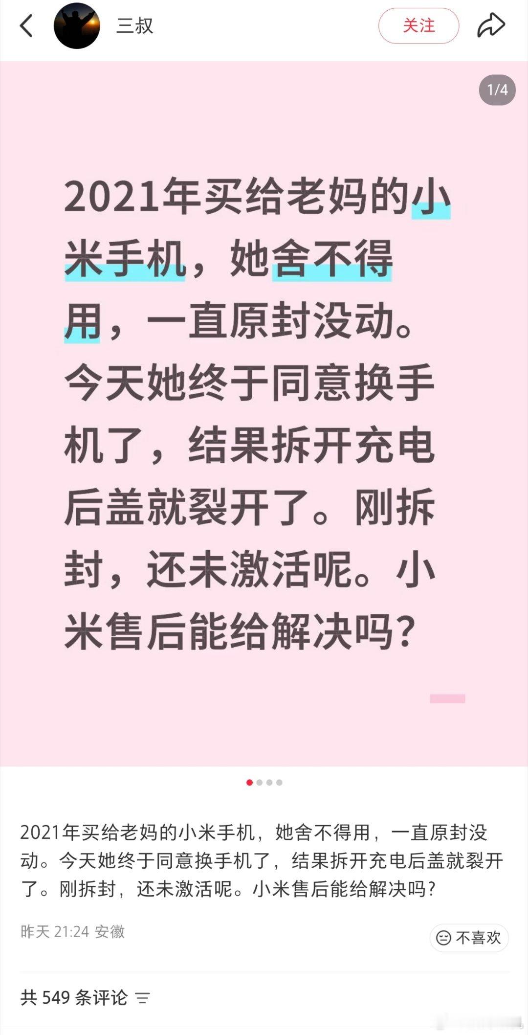 用户21年底买的小米12x送给母亲,结果母亲一直舍不得用,这几天拆开发现已经电池鼓包,好在客服说保修是按照激活后才算。