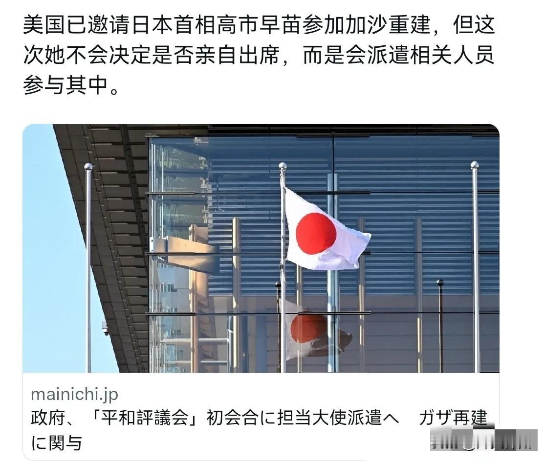 美国给高市早苗出了一道难题,现在高市早苗骑虎难下了!在选举时,特朗普表达对高市早苗的力挺之后,现在特朗普对高市早苗提要求了。2月17日,日媒报道称,美国总统特朗普已经对日本发出邀请,希望高市早苗出席定于19日在华盛顿举行的巴勒斯坦和平委员会首次会议。 评几句: 特朗普选举时力挺高市早苗,如今“投桃报李”的时刻终于到来。他直接邀请高市早苗出席华盛顿巴勒斯坦和平委员会首次会议,这无疑是一道棘手的外交难题。 对高市早苗而言,去,就要在敏感的中东议题上站队,既可能激怒阿拉伯国家,也会在国内引发巨大争议;不去,又等于不给特朗普面子,得罪这位关键盟友,后果同样麻烦。 这正是美国盟友常见的困境:被轻易拉上战车,想全身而退却十分困难。高市早苗如今进退两难,正是日本长期外交缺乏自主、过度依附美国的必然结果。 说到底,一个国家如果把自身命运绑在别人的战略上,就只能在别人的棋局中,扮演被动的角色。