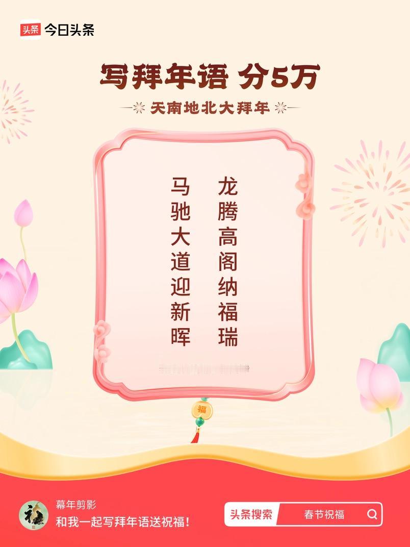 写拜年语送祝福新春拜年送祝福!我的祝福是:“马驰大道迎新晖,龙腾高阁纳福瑞”!快