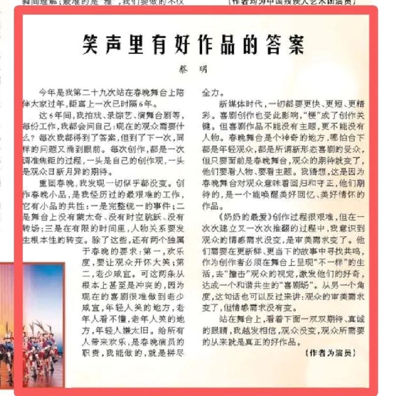 蔡明尬演完小品,在人民日报发文,小品里蔡明仿生机器人,这也是AI写的吗?没想到蔡明还有这文笔,标题就很假,笑声里有好作品的答案,今年小品有人笑吗,与好作品沾边吗,应该改成骂声里有烂作品的答案!